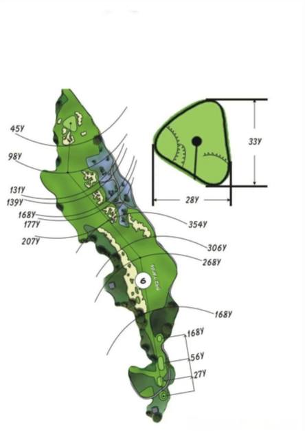 海口观澜湖高尔夫1号场黑石球场(Blackstone)为当之无愧的亚洲百佳球场,海南必打球场。整座球场中的皇冠珠宝——锦标赛球场。这块不含房产区的纯高尔夫球场占地350英亩,穿梭于由高大树群、茂密丛林以及大片的湖泊湿地等组成的壮阔景观当中。球场特有的地貌特征,是整个场地的火山岩地表,以及从25英里之外运来的覆盖在岩石层上的地表土。现场的原始地形落差很大,设计师非常注意在原始地形中“寻找”球洞,以尽可能地减少石方量,同时多保留一些现场美丽的荔枝树。火山岩铺就的基础底面被视为设计过程中一个重要的因素,因为这些天然的岩石能够造就出不规则的草皮与岩石之间的分界线,使这里看上去与其他大多数的球场风格迥异。球道造型与周边景观相辅相成,强调地表排水,使得集水井式排水系统的压力大大减轻。这样处理的结果,就是球道草皮犹如神奇的地毯一般,配上柔和而又不规则的线条,再加上没有高草区(甚至沙坑边也设置球道草),使得整个球场在视觉上没有过重的线条。原始的火山岩基底以及火山石墙、村庄的遗迹被穿插保留在球场当中,形成一种强烈的视觉对比,同时也记录着这里的过去。 球场的开始阶段坐落在植被相对繁茂的地段,球道的宽度变化很大,果岭区域则是自然宽敞,利于观看的设置。最后的几个球洞围绕一处较高的中心点排布,使观赛的球迷无需过多的移动就能够看到尽可能多的球场情况。 从发球台到果岭的连通顺畅、地形平缓,使球场非常便于行走其中。足够困难、码数够长(7600码以上),并且提供各种冒险/奖赏的可打性。