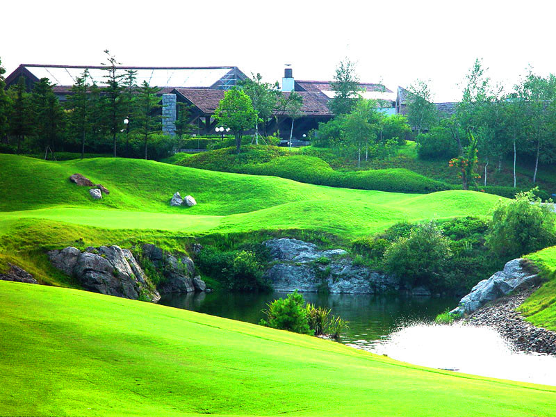 除了双果岭的问题,果岭的表面同样非常有难度,草皮或薄或浅, 呈玉米叶形状。东场有些果岭也非常高难,除非推杆球打的异常完美,否则想要在标准杆下击球进洞几乎不可能。韩亚乡村俱乐部最让人印象深刻的,还得是7号果岭的吊机。吊机可以把球车吊至8号发球台。球手们坐在球车里,向悬崖峭壁处高空移动,这种体验妙不可言。