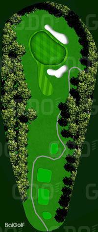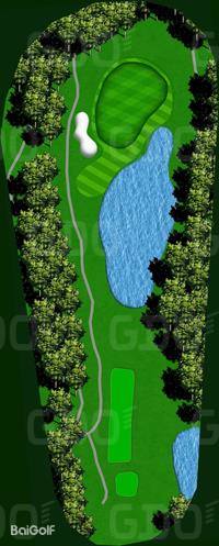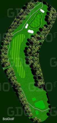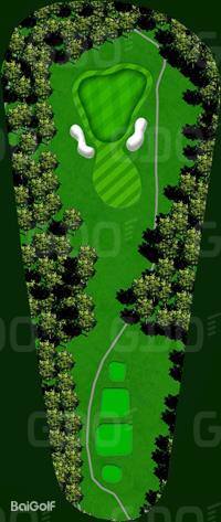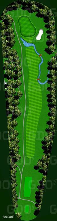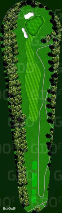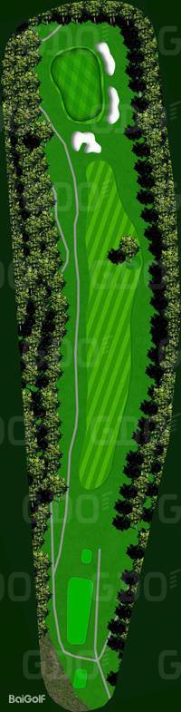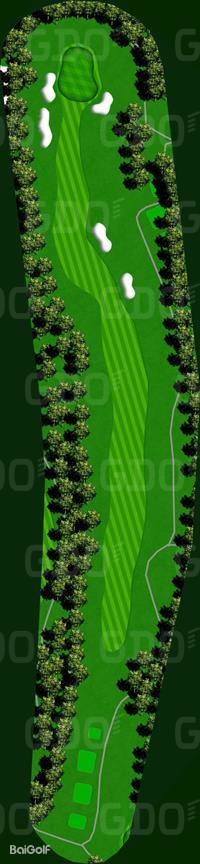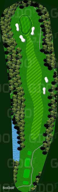 这是一座丘陵球场。前9洞的每个球洞设计直线性强,大多数球洞从发球台可以清晰地看到旗杆位置。第一个球洞是一个稍微向左的狗腿长洞,需要特别注意第二杆;第六号球洞的发球区右侧有一条溪流,也是需要注意的地方。