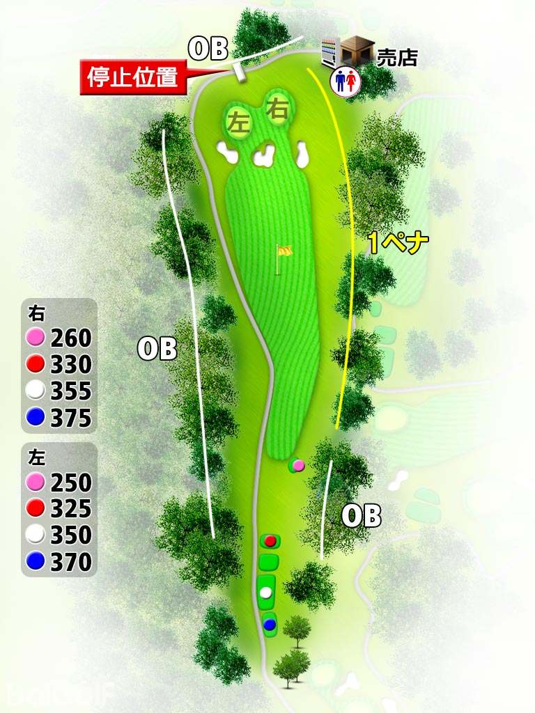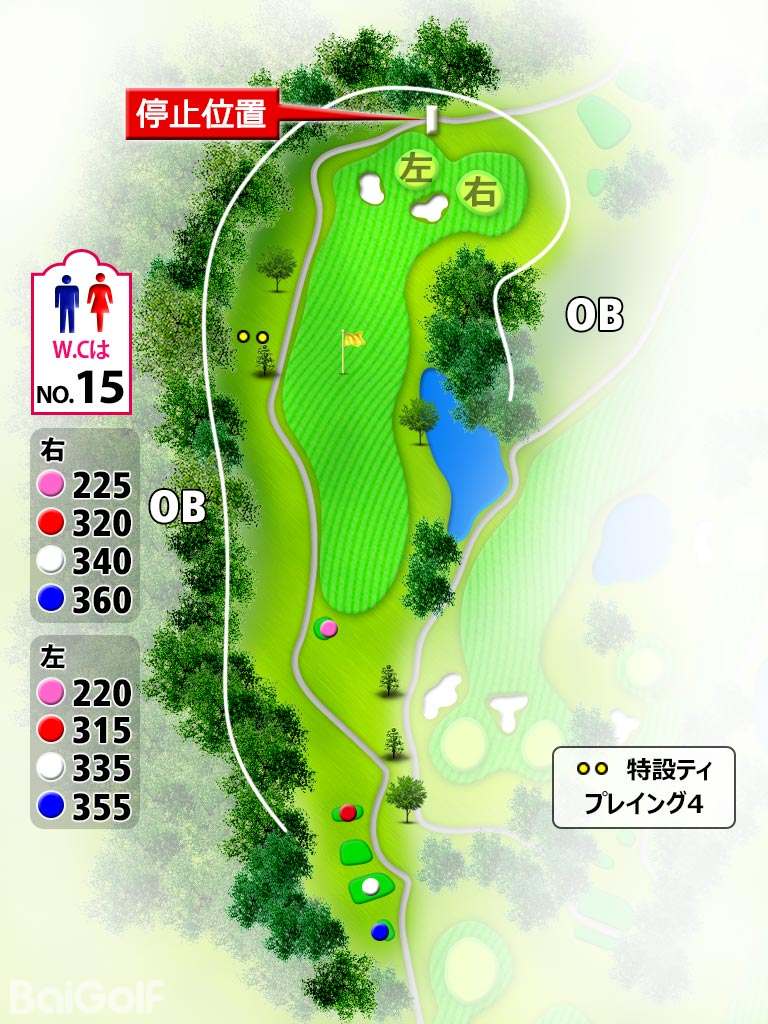 由前、后、东3个球场组成的27洞丘陵球场。拥有丘陵地特有的高地起伏,无论哪个球洞都充满战略性。是个考验球手头脑的战略性球场。前半场从1号远球洞开始便是宽广开放的球道,个性鲜明的狗腿洞、避开OB的滑道等各种重要的球洞和多彩的设计接连不断。后半场高低起伏适中,巧妙地配置了水池等。整体的球场设计给打球带来了各种变化的趣味。
