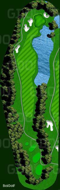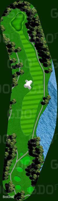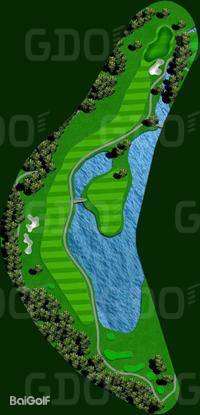 前9洞左边是山谷、山崖等OB区,特别是5号球洞要求飞越山崖。后9洞最后的5个球洞全为水池、小溪相连,十分考验击球的正确性。