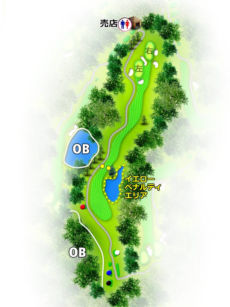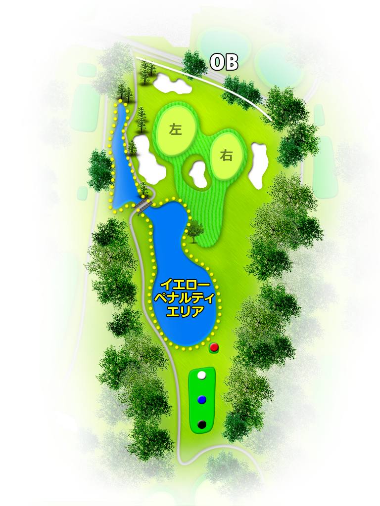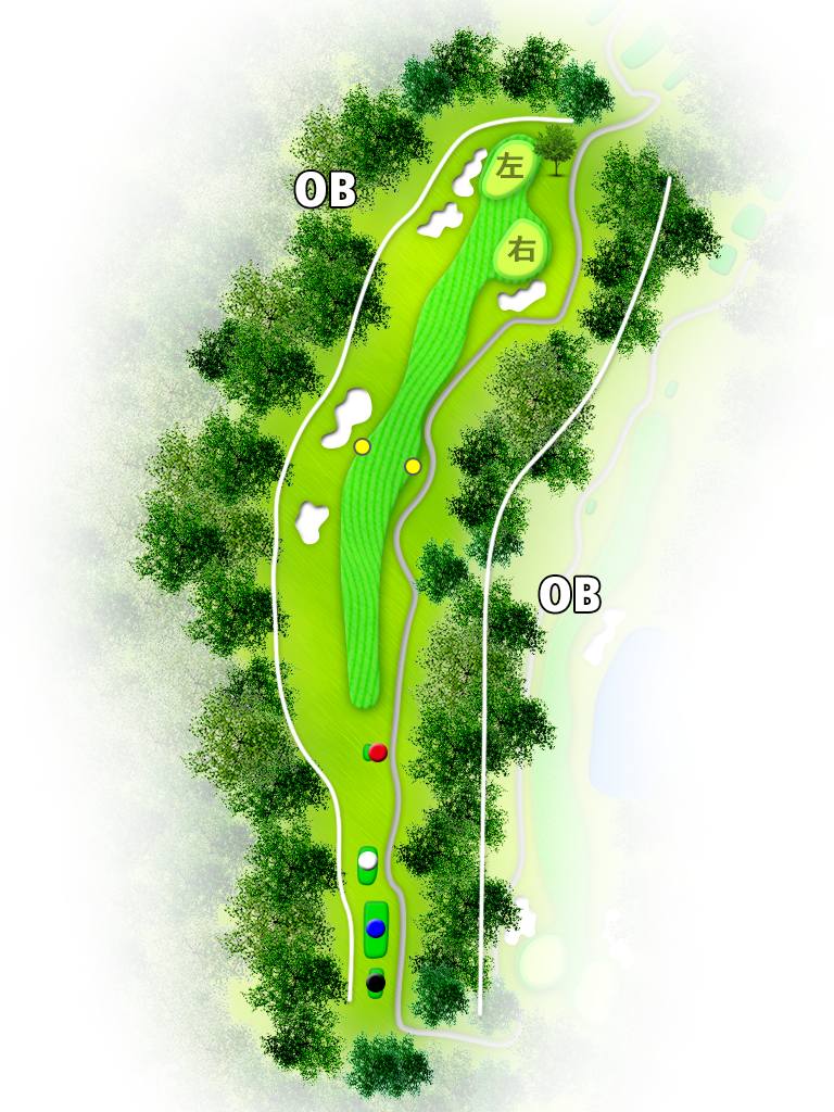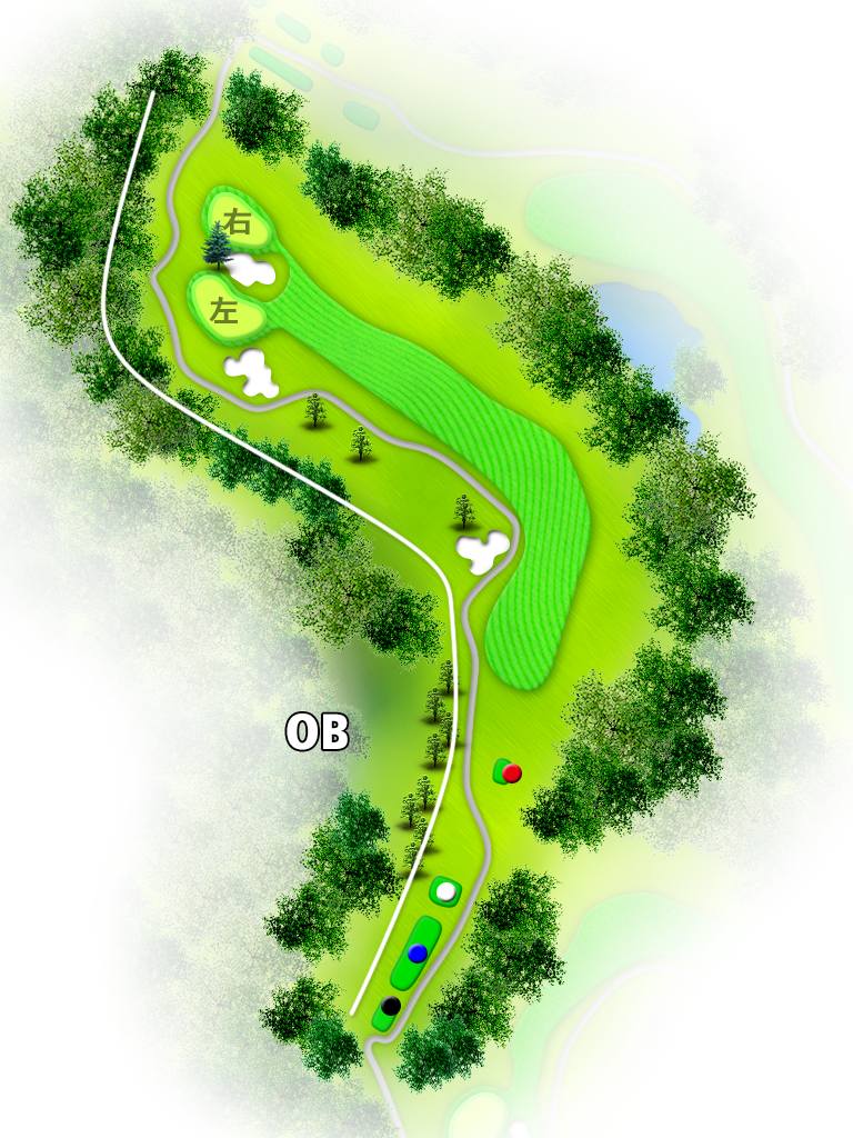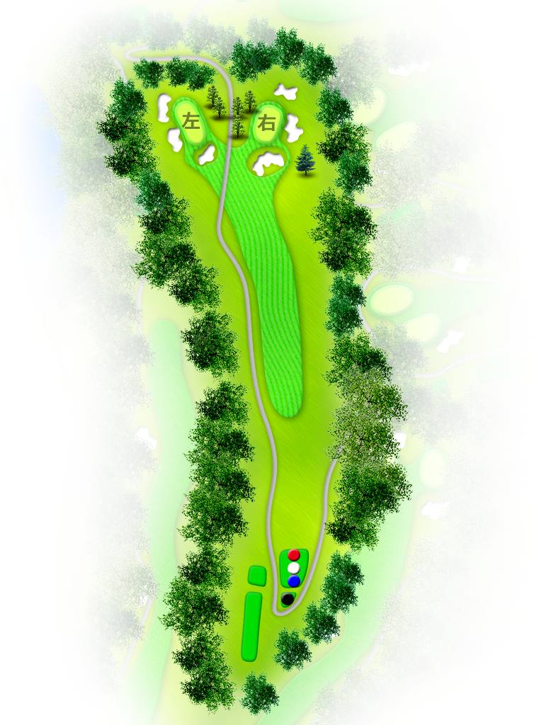 被美丽的自然树林紧紧包围,起伏平缓,地形平坦,由东西两个球场共36个球洞组成。东球场距离较远,布局刁钻,是个正统的冠军球场。较有名的是18号球洞,水池设计巧妙,景色动人。西球场整体平缓而优雅,接二连三都是美丽的球洞,果岭四周也有不少沙坑,需要正确的控球力。