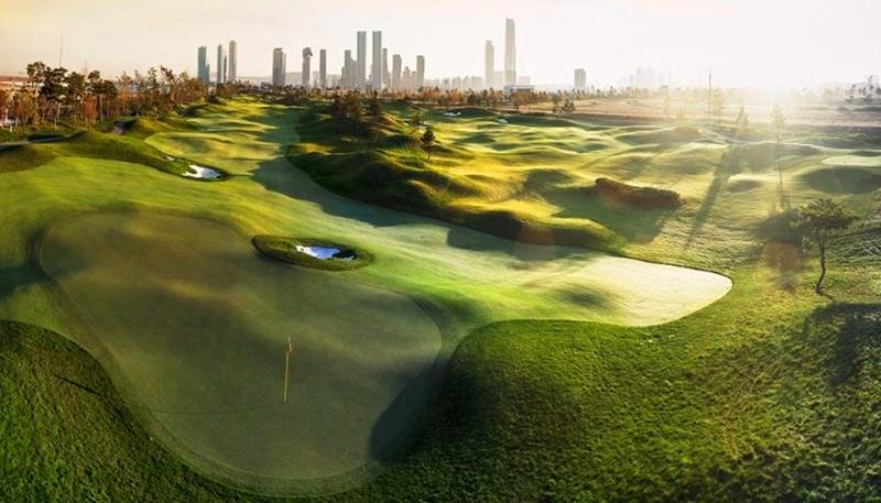 杰克·尼克劳斯高尔夫球场是一个典型的18洞的城市高尔夫球场、练习场,位于填海形成的陆地上,具有广泛的水景,在韩国是第一个。该高尔夫俱乐部在亚洲具有顶级配置,是私人高尔夫俱乐部和生活方式社区。该俱乐部周边是宁静的绿洲,接壤着自然保护区和震撼人心的美丽海景。住在这里,提供了最好的两个世界—— 城市的自然和安宁与生活的优雅和便利。