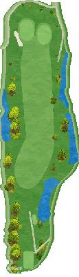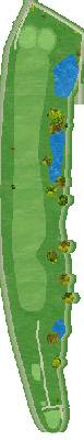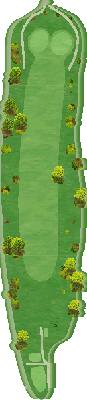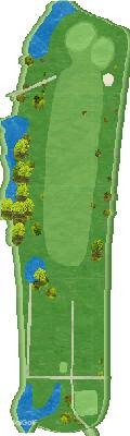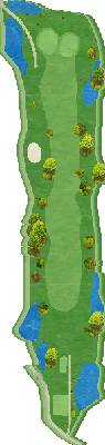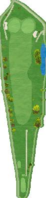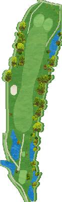 河滩球场。这是一座建在荒川河滩上的、平坦的 18 洞球场。虽然各处设置了一些池塘,但笔直且视野良好的球洞很多,障碍物也少。正因如此,为了打出好成绩,在进攻时重视对距离的把控就很关键。前九洞,从 1 号洞到 6 号洞连续都是左侧有出界区域的球洞,左曲球和拉球非常危险。话虽如此,但如果打出右曲球,就会被相邻球洞之间的池塘困住,所以要尽量避免打出曲线球。后九洞从 10 号洞到 16 号洞连续都是右侧有出界区域的球洞。习惯打出右曲球的球手要格外小心。开场的前 3 个球洞属于 “新手友好洞”。