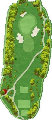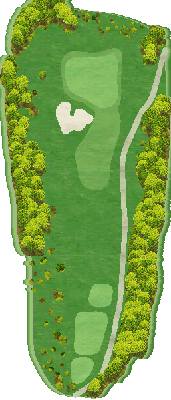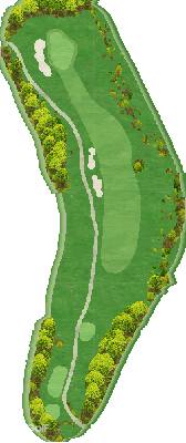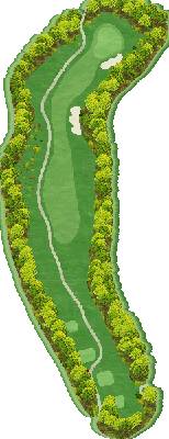 丘陵球场。前九洞中,有几个球洞会有一点点向上击球或向下击球的情况,但球洞的整体构成几乎平坦到让人感觉不到这点变化。只要平稳地打好有池塘相关障碍的 4 号洞,以及稍微呈左狗腿形的 6 号洞,之后就会比较轻松。后九洞和前九洞相比,有向下击球幅度较大的地方,12 号洞和 13 号洞连续是向下击球的球洞,所以如果发球时打出曲线球,风险就会很大。另外,16 号洞是越过山谷的短洞,因为距离不长,所以要切实地越过山谷。总体来说,不勉强自己,从近处开始进攻的话,很有希望能打出好成绩。