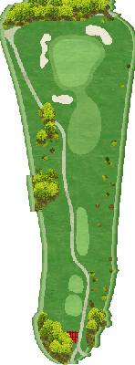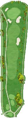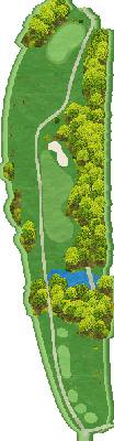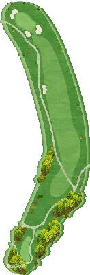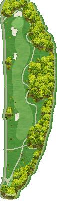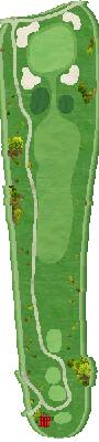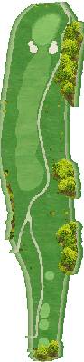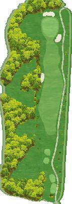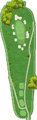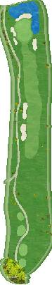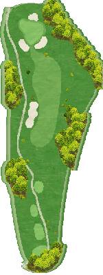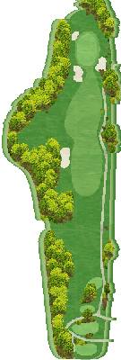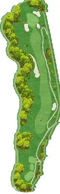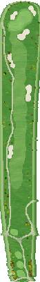 丘陵球场。整体地形有高低落差,但每个球洞都修建得较为平坦。在紧凑的布局中,点缀着一些独具特色的球洞。第 8 洞和第 18 洞明显设置了水域障碍。第 8 洞短洞在果岭前方延伸出一片水面,营造出惊险刺激的氛围。而第 18 洞的池塘位于果岭后方,同样会对球手的心理产生影响。尤其令人印象深刻的是第 7 洞的景象,果岭后方的奇形岩石一直延伸到有颜色标识的区域。