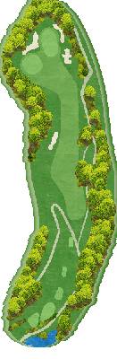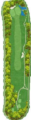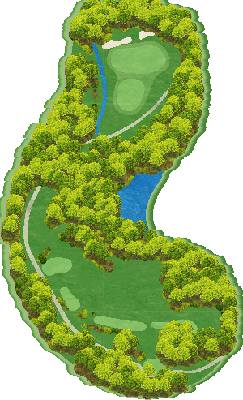 这是一座丘陵球场。虽然整体上存在高低落差,但通过设置升降机等设施进行间隔调节,各个球洞大体上都修整得较为平坦。球道虽然比较宽阔,但无一例外都朝着某个方向倾斜,所以如果发球击球时没有精准瞄准,那么下一次击球就很可能会变得极其困难。球场内保留了许多树木,而且还有经过巧妙布局、具有战略性的池塘,充满生机。这是一个高水平球手和中、初级球手的得分会有较大差距的球场。