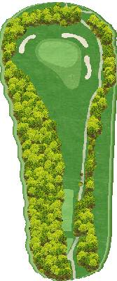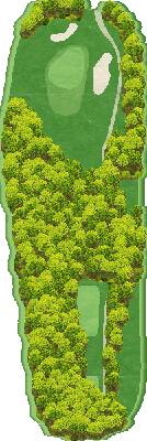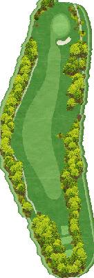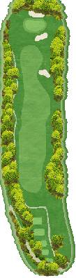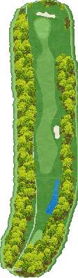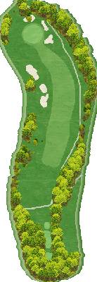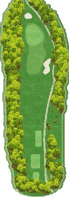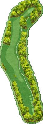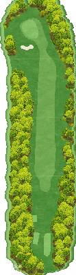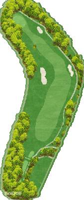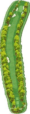 丘陵球场。整个球场有高低落差,但各个球洞地势平坦。球道宽阔且笔直,出界区域仅在球场外围。有很多球洞可以让人在不太有压力的情况下击球。不过,球场上也设置了一些需要把握好距离感和方向感的球洞,以此增加球场的难度。比如在前九洞,第 3 号洞需要越过山谷,是一个很难保帕的短洞。在后九洞,第 15 号长洞向右有两个弯道,果岭就在弯道深处。球洞左侧是出界区域,右侧弯道附近还有灌木丛,是个颇具难度的球洞。