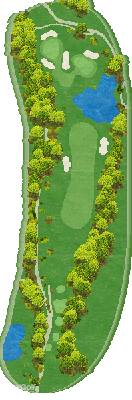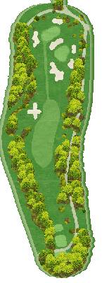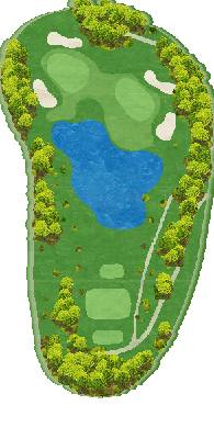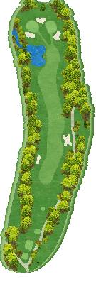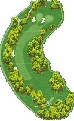 丘陵球场。在地势平缓的丘陵地带展开的,所有球洞均朝南的 18 洞球场。每个球洞的球道都足够宽阔,能够尽情享受畅快的打球体验。在前九洞球场中,第 8 号短洞需要越过池塘,第 9 号洞在果岭前有池塘,所以在进行切杆击球时需要格外留意。后九洞球场的布局和前九洞相似,打球节奏也比较舒缓。第 18 号长洞是一个略微的下坡击球洞,果岭前有池塘,极富战略性。球洞之间的间隔较短,球手能够全神贯注地投入到打球当中。