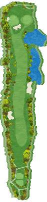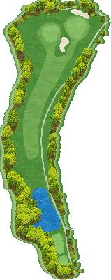 丘陵球场。由于其处于从平地延伸到丘陵的地形条件,能看出在大量搬运了丘陵地带的土方之后,球场基本被修整成了平坦的样子。整体距离较长,剩余距离的标示也很准确,所以更适合打出较大力度的击球。前九洞的左侧区域暗藏危险,最好从右侧方向展开进攻。有很多球洞都和池塘相关,打球时不能勉强,必要时需要选择一点点推进等方式,因此需要具备灵活性。