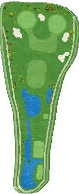 河岸球场,球场的部分区域有带状的低洼地带,将球打上果岭时会有不同的变化。总体来说,球道很宽阔,沿着修整好的球车道路行驶,能迎着清爽的凉风顺畅移动,享受舒适的打球体验。关键位置设有池塘和沙坑,果岭也有微妙的起伏,所以也很考验打球的策略性。