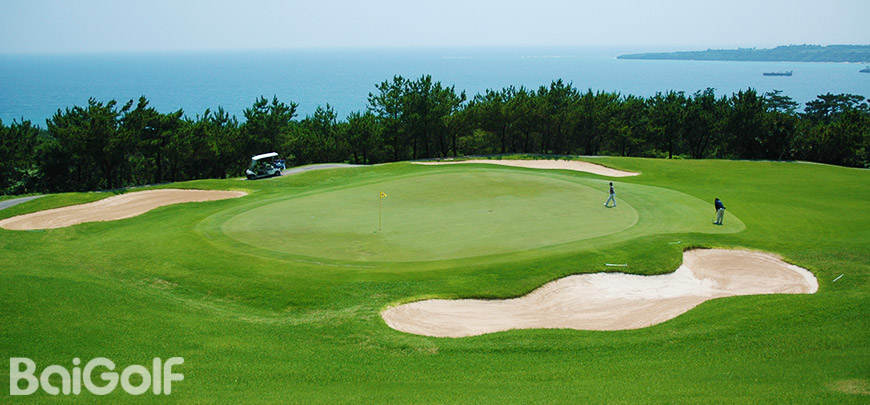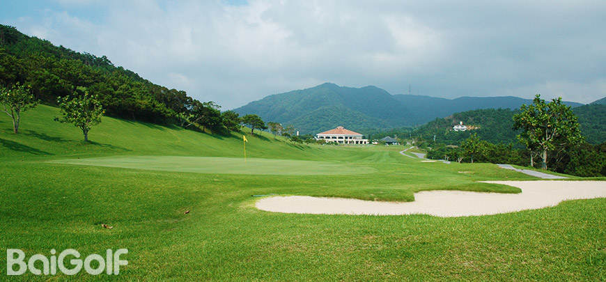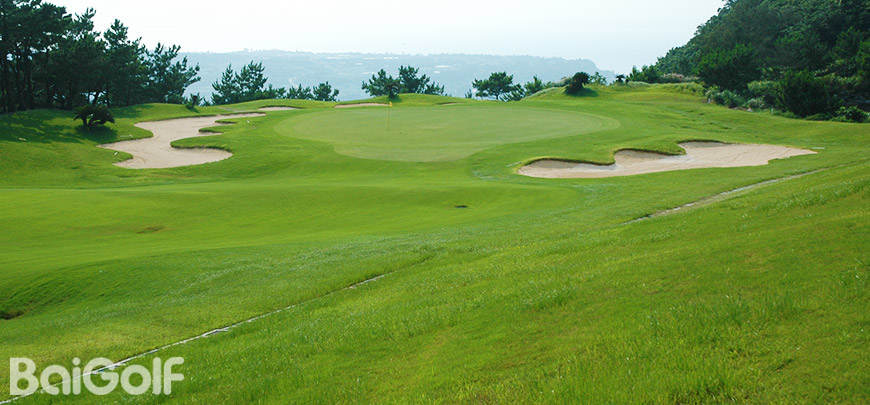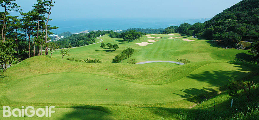 球场由相山武夫与珍·史蒂文森联手设计,18洞、标准杆72杆,全长6551码。整体布局依山而建,大部分球洞为下坡或平坦,唯有少数上坡洞考验体力与策略。果岭面积巨大,平均达900平方米,高丽草的质地坚韧而快速,推杆时需要格外留心旗杆位置与风的方向。海风是这里的常客,时而温柔,时而猛烈,常常让球的轨迹如同被大海的呼吸牵引。球道虽不算漫长,却因山腹的阶梯式地形而暗藏险境,一旦偏离,便可能滚落至惩罚区。