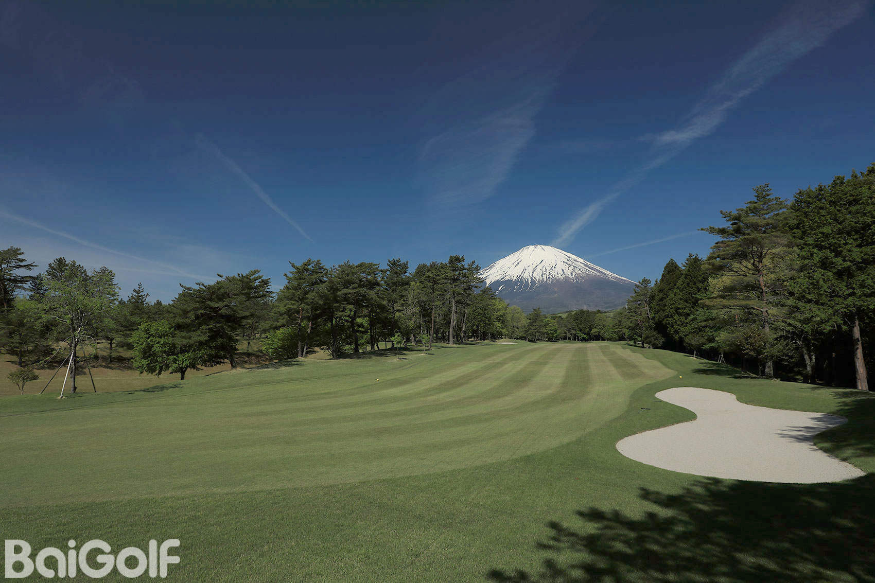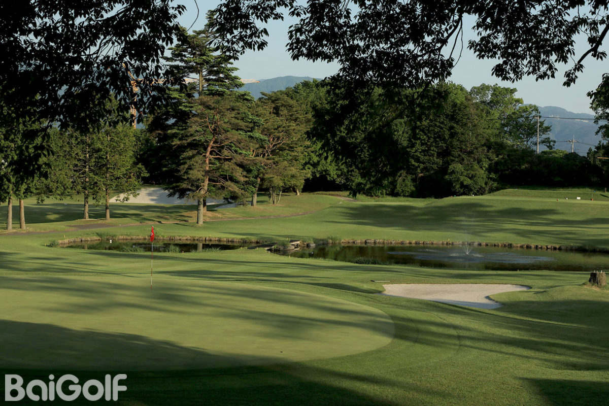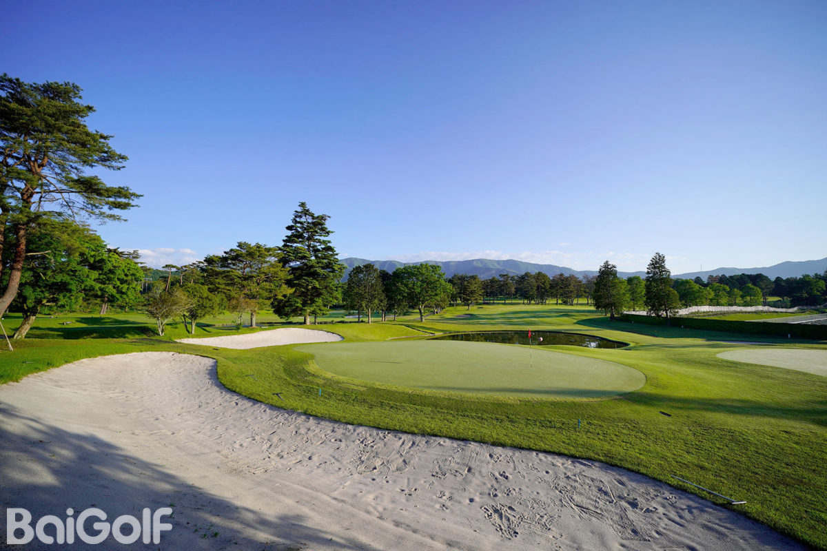 东西球场的设计巧妙地融入了水边的变化景观,提供了两次越过河流的击球体验。这个球场相对平坦,面对富士山时可以尽情享受豪放的击球。