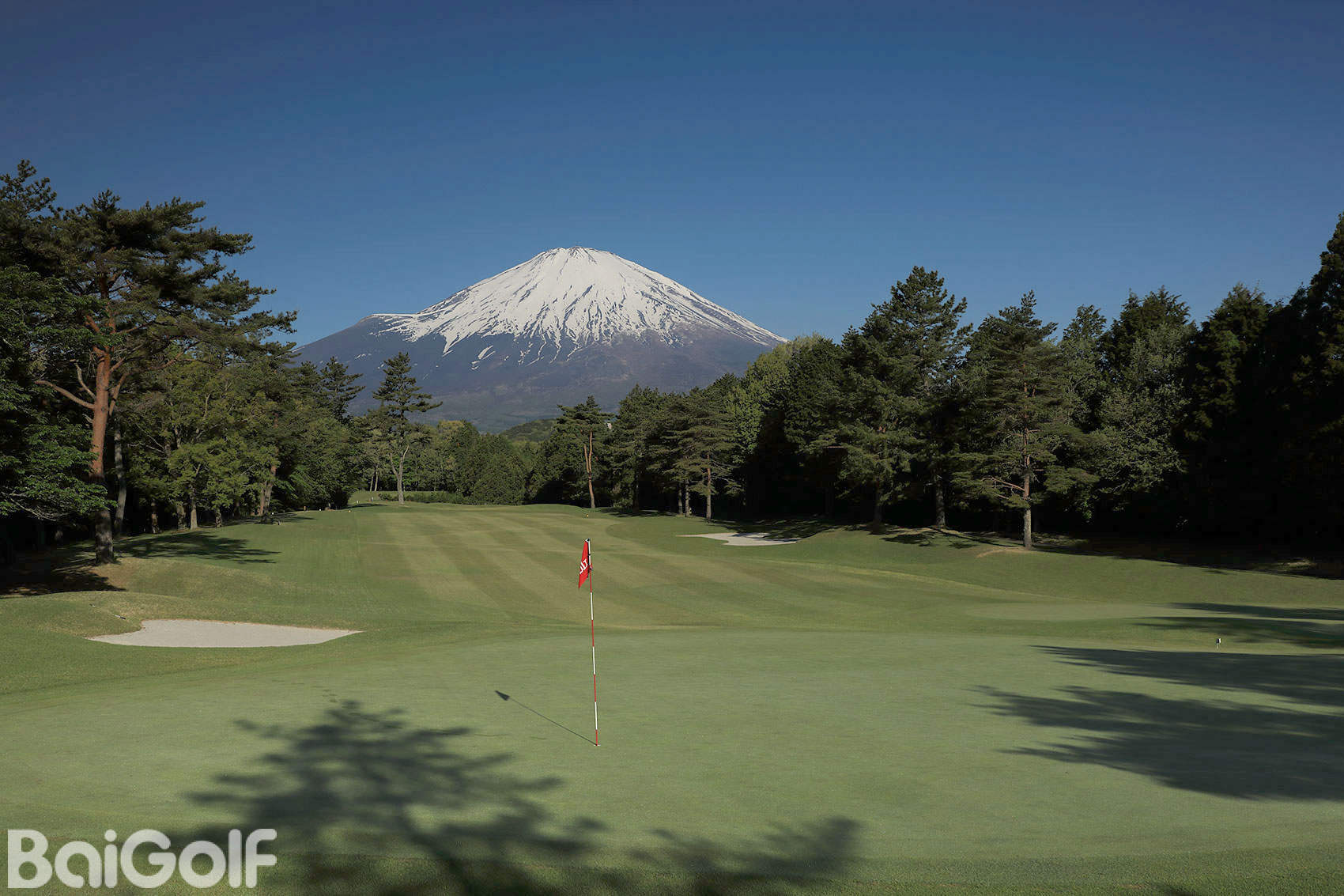面向富士山的豪放挥杆,利用水边变化的平坦布局