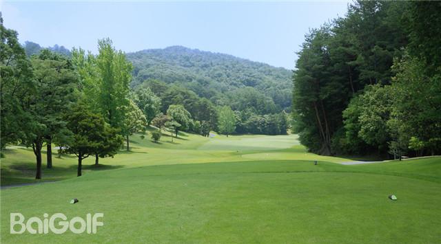 正统丘陵球场,巧妙地活用了自然的地形建造而成,个性化布局与美景同时兼备。整体上起伏适中,选择球杆是攻略的一大重点。8号四杆洞是下坡击球,从开球区便可望见果岭。瞄准球道中心击球会比较有效,不过也要谨防果岭左右的倾斜。需要谨慎击球。著名的17号球洞是右狗腿的五杆洞。210码的距离中设有水池,太过拘泥于此可能导致第二打难以瞄准,所以把握好方向性是十分重要的。