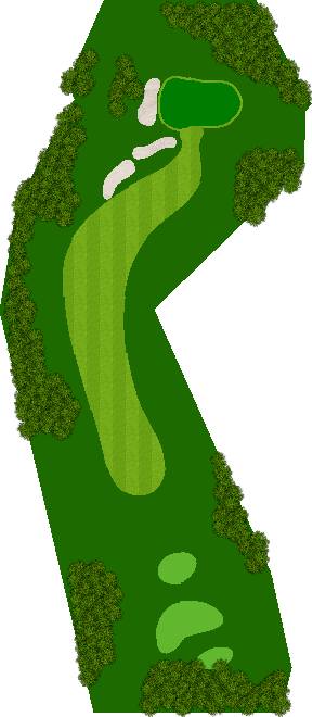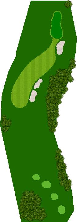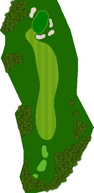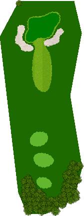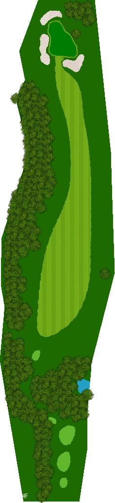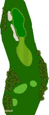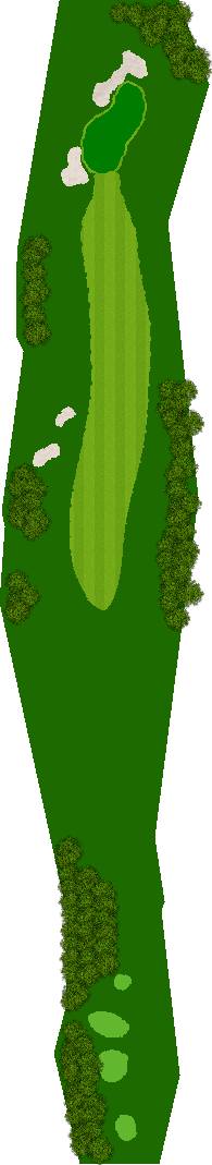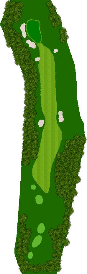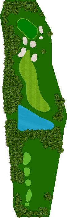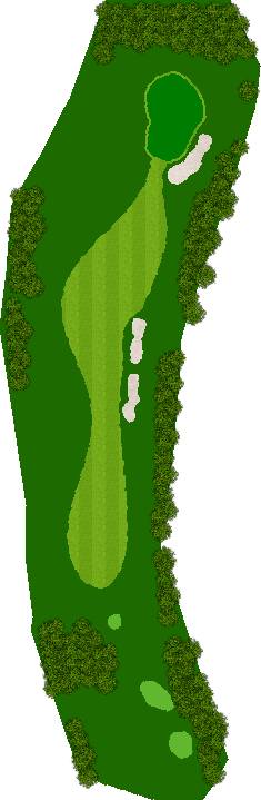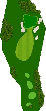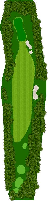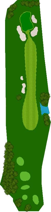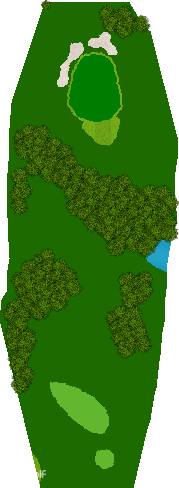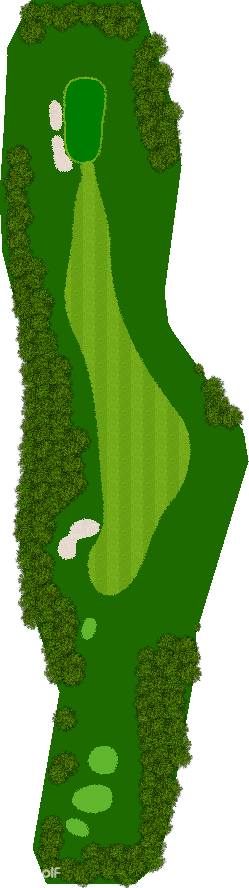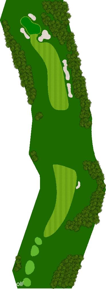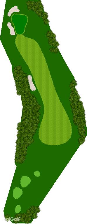 从后发球台(青色)发球大约是6,300码,从常规发球台(白色)发球大约是5,900码,从女性发球台(红色)发球大约是4,900码。