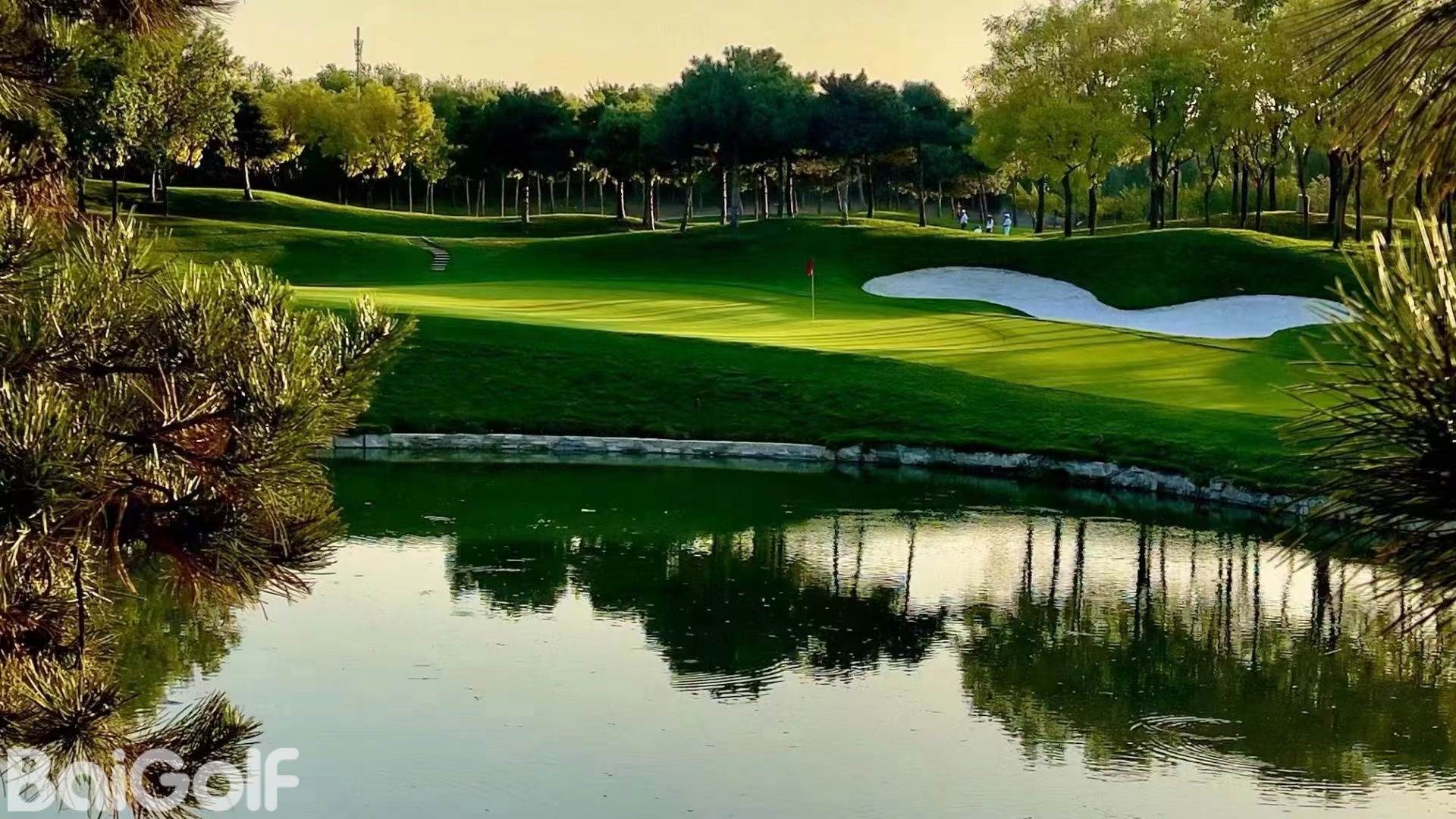 标准72杆的18洞高尔夫球场。球道设计错落有致、难易结合,连体的沙坑、起伏的球道和高难度的果岭都将给您一种想要征服它的欲望。球场在设计建造过程中,以自然生态为主线,充分保留原有数木,让古木成荫;同时延续奥林匹克公园龙型水系景观,还清河水清,将清河河道治理成满足城市景观和新北京奥运需要的生态河道。北京奥园高尔夫第15洞是球场的名洞,植被和水系景观搭配相得益彰,炮台式发球台,落差7米,果岭左右被一大一小的两个沙坑夹击,需要度量攻击果岭的方向和距离!