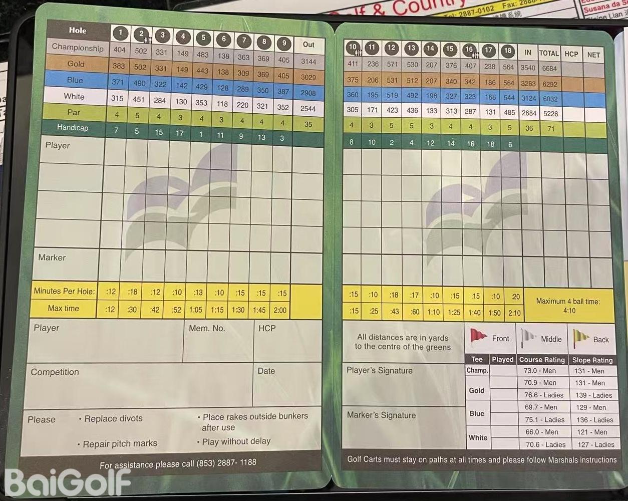 澳门高尔夫球乡村俱乐部(原名澳门威斯汀高尔夫)位于澳门离岛路环山上,与香港的愉景湾、清水湾球场相若,眺望南中国海,景致优雅宁静,每个球洞都能带来有趣味及充满挑战的高尔夫球体验。球场还有高级会所设施,提供各款美味佳肴及殷勤服务。球会山高水多,地势陡峭,球道狭窄,风格近似于山地球场与林克斯的结合体,完全是这个城市的翻版,如果不开球车下场的话会非常的吃力。澳门高尔夫乡村俱乐部是华南地区其中一所著名的私人会所。
