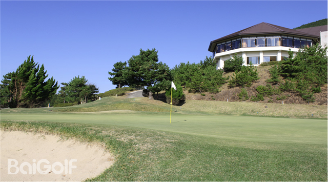 能够眺望太平洋、战略性丰富的山岳球场。位于能够俯视胜浦温泉的那智的妙法山麓上,前半场下坡球位多,球洞距离较长,但是球道较狭窄,比起距离更需要正确的控球力。后半场距离比前半场短,起伏也比较少,但是随处可见的越谷球位、狗腿洞、越河球位增加了变化,很是棘手。