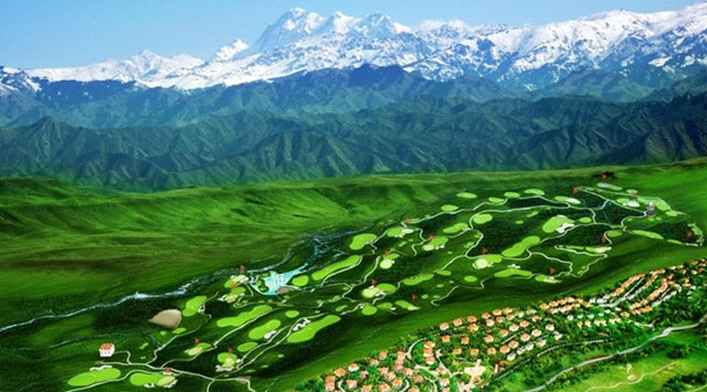 市景高尔夫球场为山地球场,总长7200码,其设计充分溶入新疆大漠戈壁的豪情及天山山脉的气势,利用雪莲山自然的丘陵地形建造,充分体现新疆地大物博、豪迈宽广的地域特点。博格达高尔夫球场与天山山脉隔空相望,远眺终年积雪的博格达雪峰,景观优美,视野开阔,加之其天然的丘陵地形,更令整个球场如鬼斧神工,是自然天成的一个具有挑战性、专业性、观赏性的山地高尔夫球场。