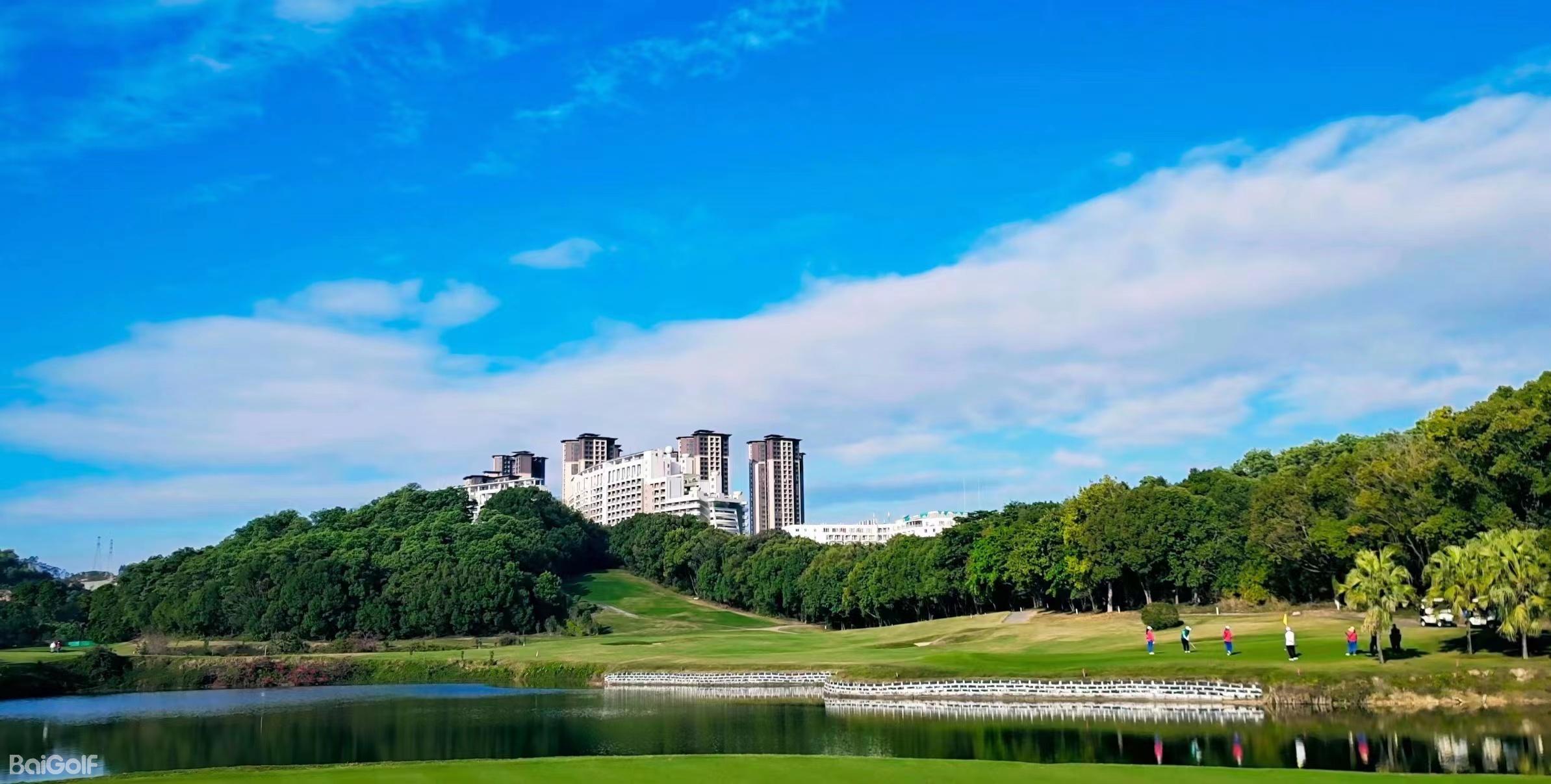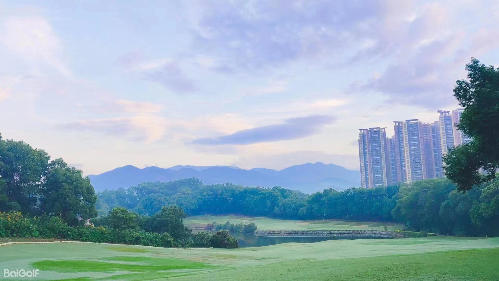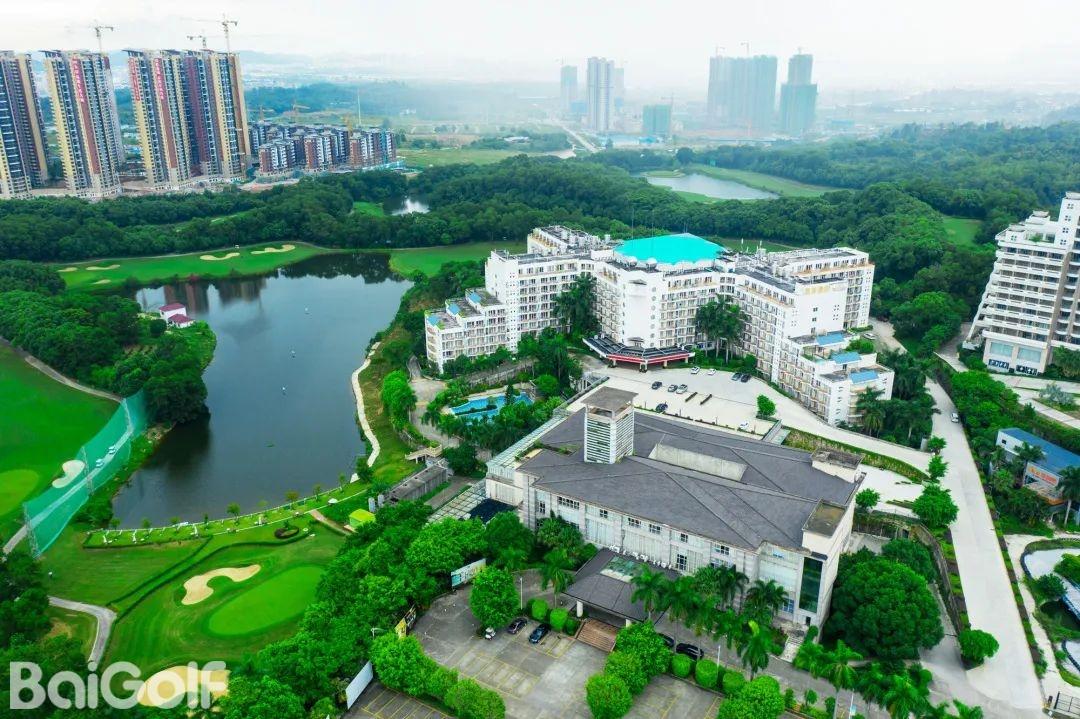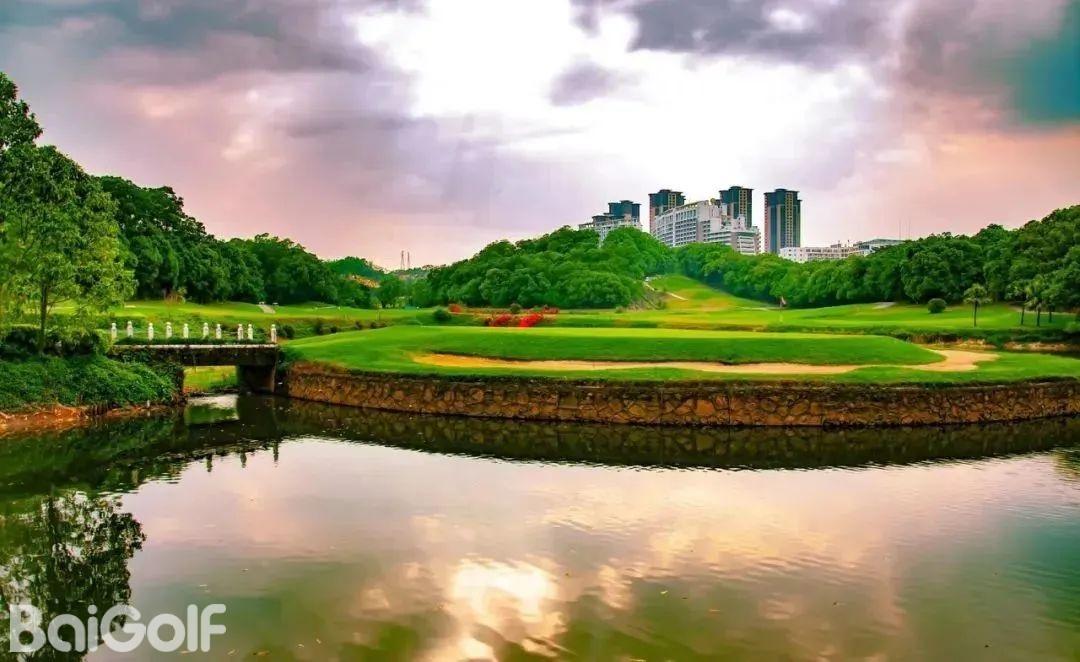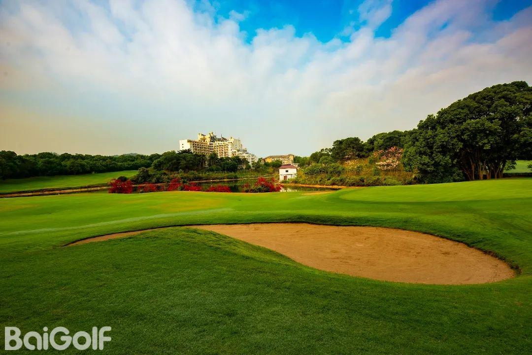 惠州汤泉高尔夫俱乐部,位于惠州市东江之滨,占地超过3000亩,是一处符合国际标准的18洞高尔夫球场。球场由美国知名设计公司Nelson & Haworth Golf Course Architects Ltd的Neil Haworth精心设计。前9洞配备了夜间照明,球场开阔,总长度为3464码,根据地形特点巧妙布局,包括三个长洞(第1、4、9洞)、三个短洞(第2、5、8洞)和三个中洞(第3、6、7洞)。球场设计巧妙,果岭采用独特的龟背式造型。例如,第4洞是一个右狗腿型洞,保留了球场的原始风貌,古树参天,展现出一种古老而有力的气质。