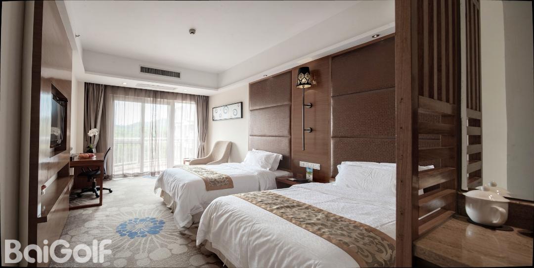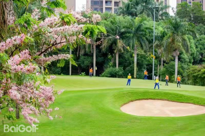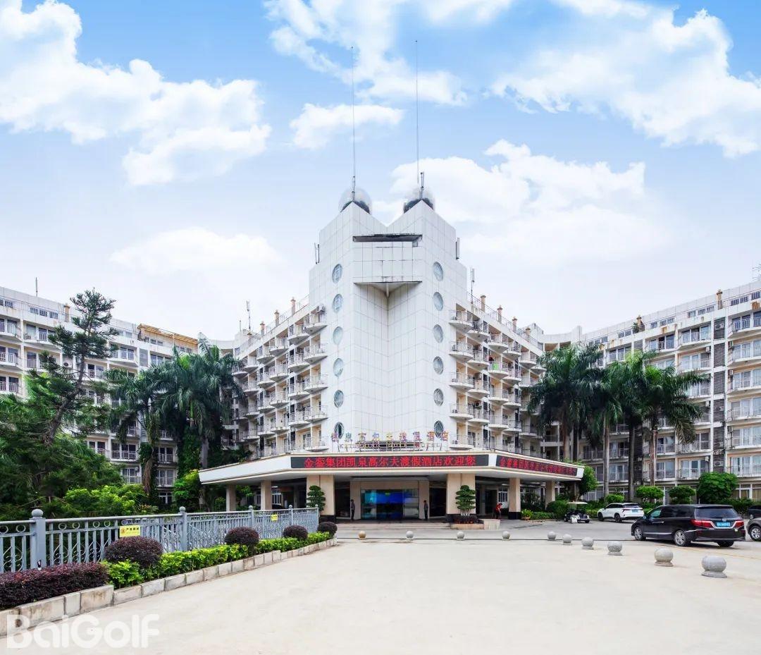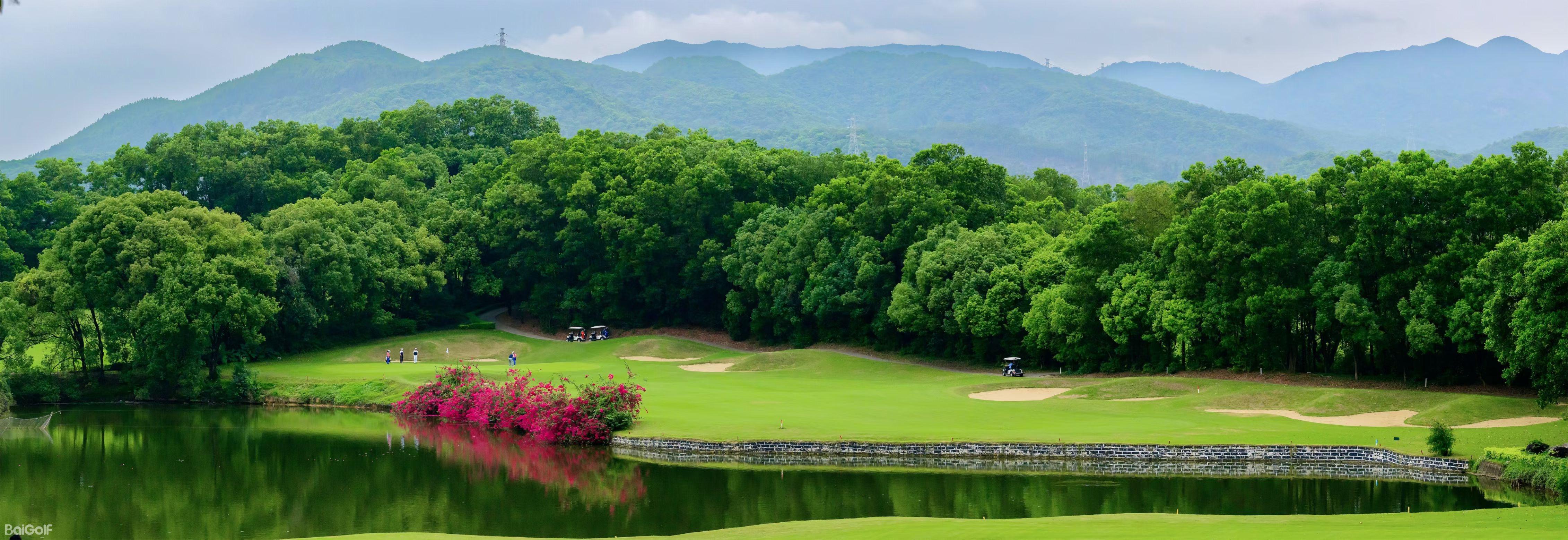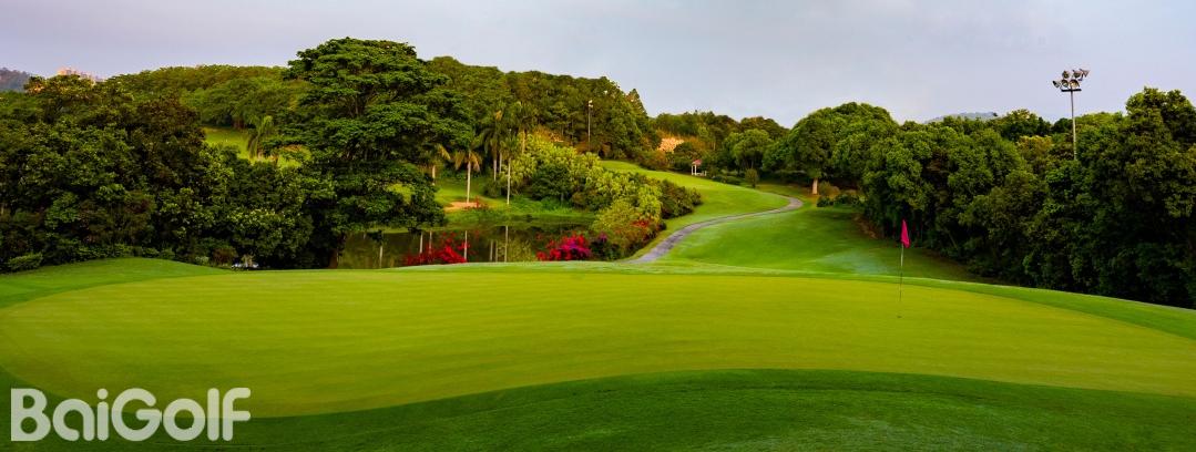 惠州汤泉高尔夫俱乐部,位于惠州市东江之滨,占地超过3000亩,是一处符合国际标准的18洞高尔夫球场。球场由美国知名设计公司Nelson & Haworth Golf Course Architects Ltd的Neil Haworth精心设计。前9洞配备了夜间照明,球场开阔,总长度为3464码,根据地形特点巧妙布局,包括三个长洞(第1、4、9洞)、三个短洞(第2、5、8洞)和三个中洞(第3、6、7洞)。球场设计巧妙,果岭采用独特的龟背式造型。例如,第4洞是一个右狗腿型洞,保留了球场的原始风貌,古树参天,展现出一种古老而有力的气质。