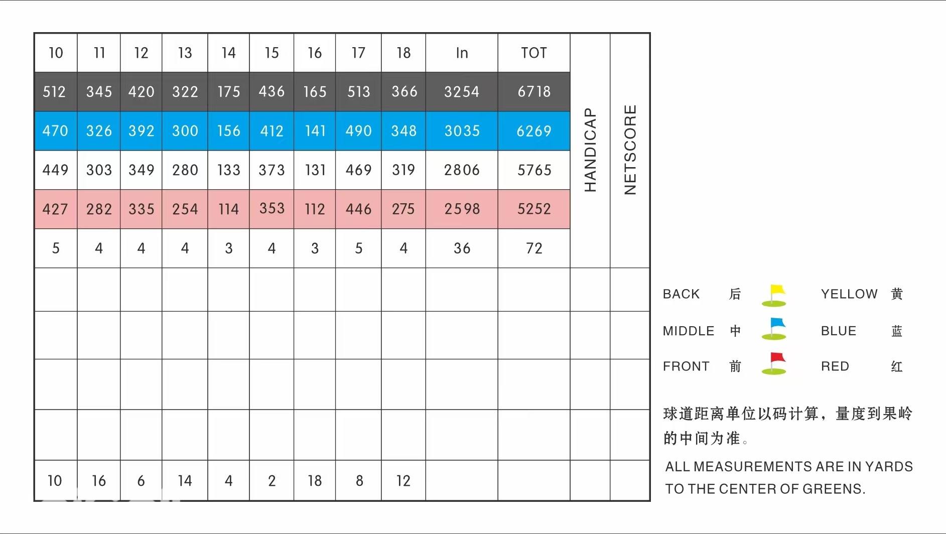 后9洞与前9洞相比,地形更为陡峭,果岭多位于山腰,设计美观且更具挑战性。后9洞全长3358码,同样根据地形特点设计了两个长洞(第10、17洞),两个短洞(第14、16洞)和五个中洞(第11、12、13、15洞)。后9洞风景如画,球道起伏不定,变化多端。
