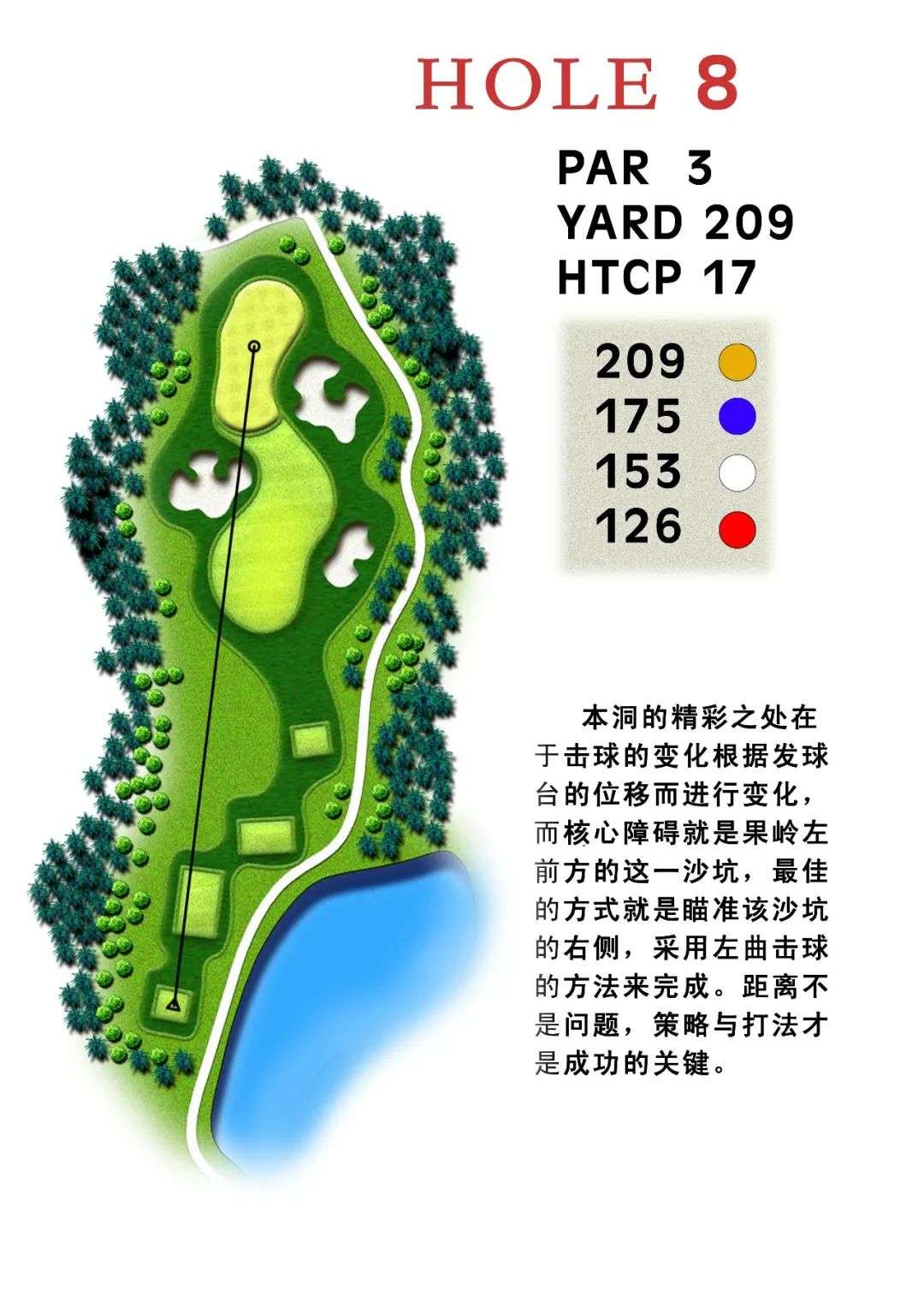 球场被原生态林木环绕,球道、湖水、树木之间的交叉融合,自然又富有挑战性。10个球道沿蜿蜒的湖岸分布,在蜿蜒起伏的球道与清澈深蓝湖水的交相辉映中,高尔夫与原生态自然环境的巧妙融合,让您在写意挥杆的同时,尽情享受南戴河森林国际高尔夫俱乐部与自然融合的本真之美