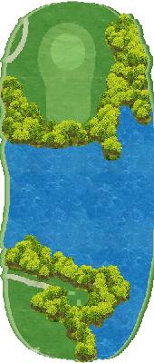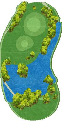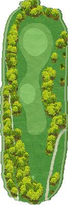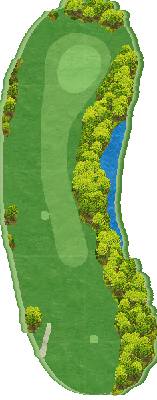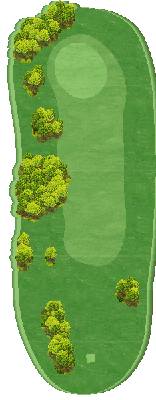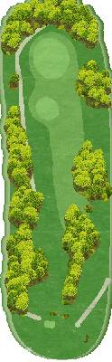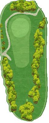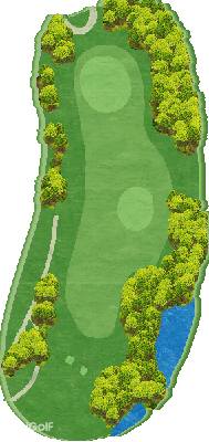 丘陵球场,后半场为东球场(18洞),整体上较为平坦,但布有水池。球场虽为短洞球道,但仍能满足高水平球员的需求,具有战略性。