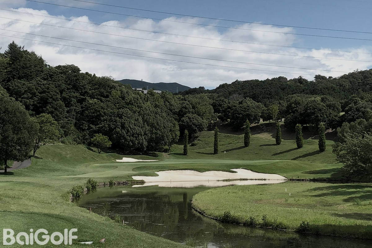 丘陵球场。位于平缓的丘陵地上,附近散布着飞鸟时代的名胜古迹。前半场和后半场的布局风格迥然不同,需要大胆的挥杆和精心设计的击球。前半场洋溢着林间氛围,后半场的风格突变,设计上给球员带来压力。5号洞是兼具美观和难度的名胜球洞。右侧的小河与果岭跟前的水池相连,和河川沙坑一同严守具有炮台气息的果岭。