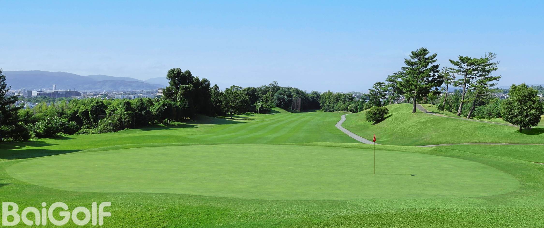 丘陵球场。自2007年12月1日起更新为本特果岭。球场位于生驹山的山麓,富于变化,充满乐趣。周围的群山,春季绽放的樱花,杜鹃花,秋天的红叶等让人赏心悦目。前半场除了5号和6号洞需要上坡击球和下坡击球,整体上让人感到平坦。相比前半场,后半场利用自然的地形形成,富有起伏。各球洞富于变化,有上坡击球,下坡击球,越过山谷,狗腿洞等。