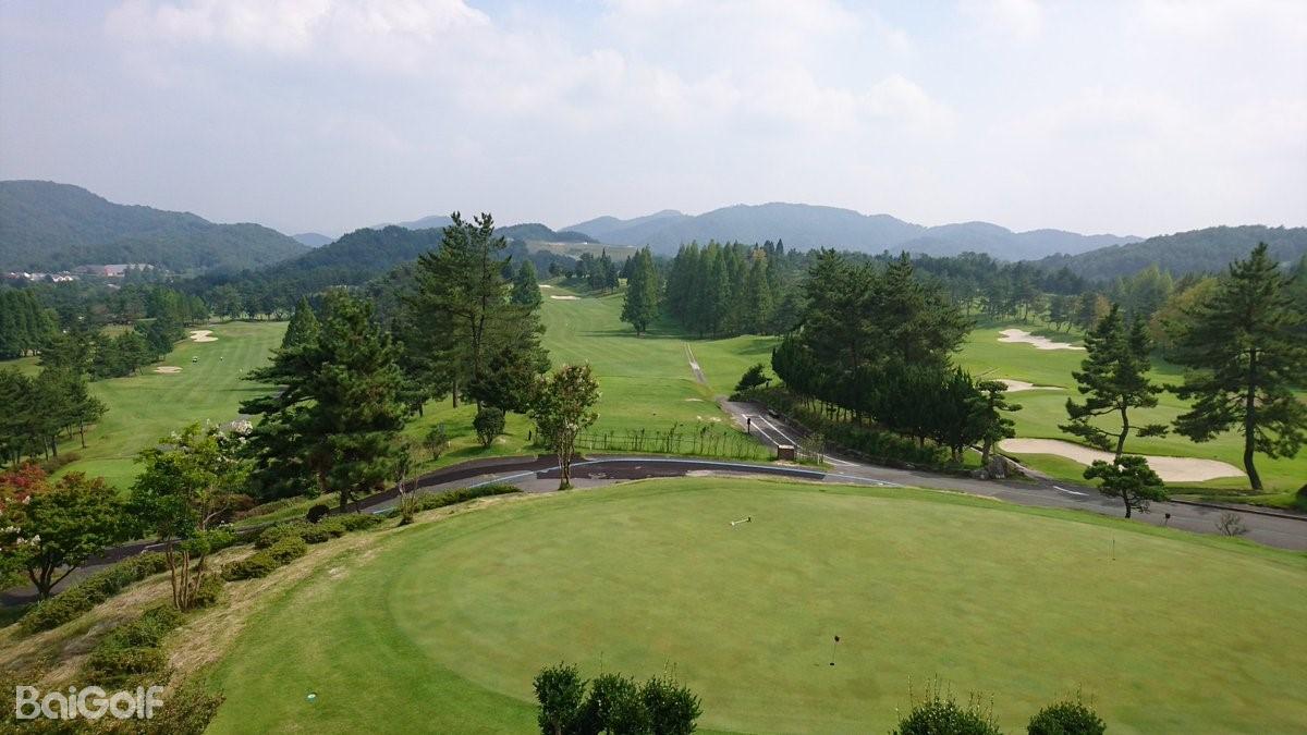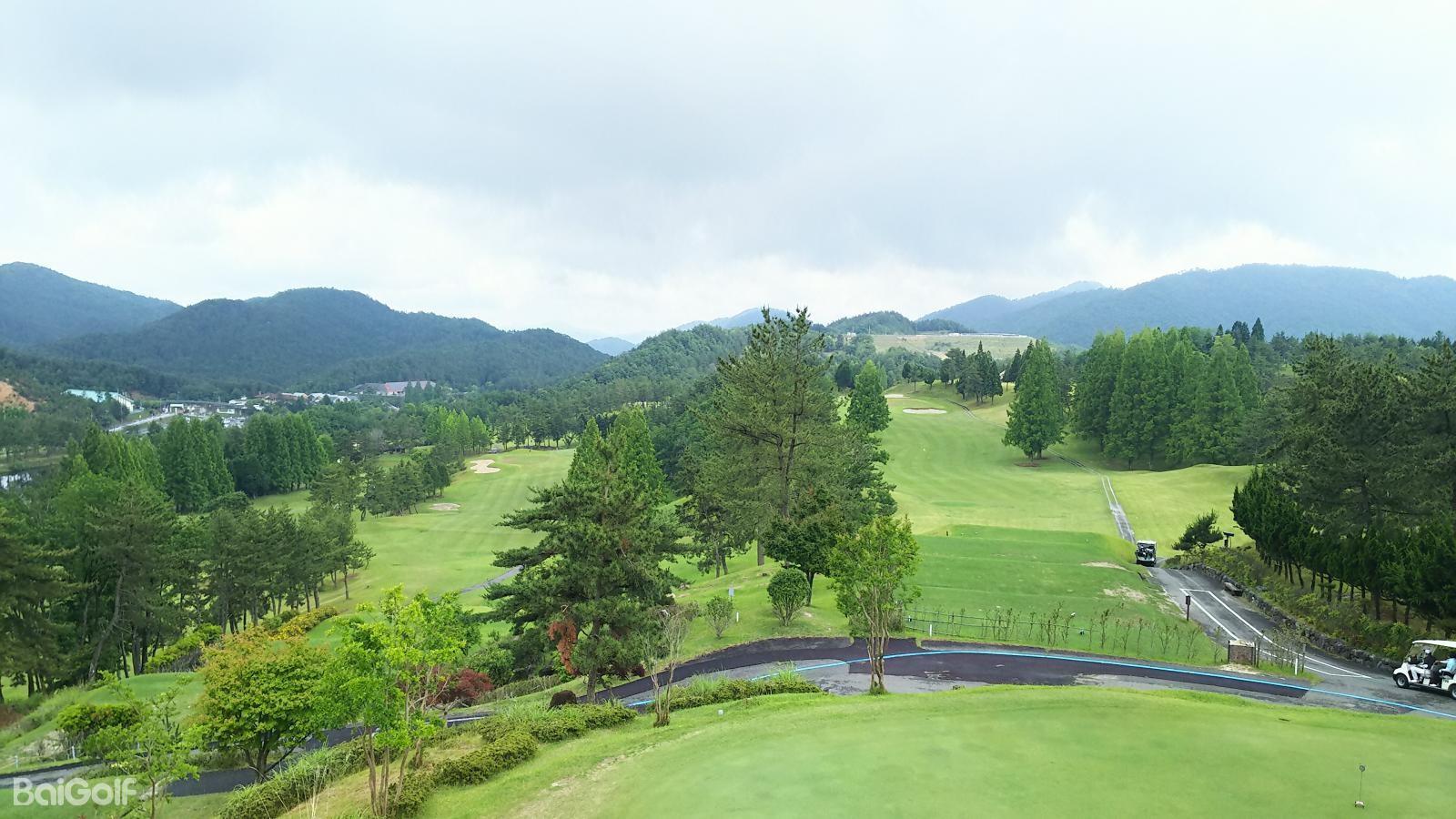 凉风吹袭的高原高尔夫球场。蔚蓝的天空中飘散在大片卷积云。东球场整体上松林环绕,布局平缓舒适。地形平坦,布有越池球洞,十分美观。中球场起伏平缓,但散布着水池,因此并非轻易就能攻克难关。西球场位于高台上,地形起伏最大,也布有刁钻的球洞。果岭面积大,左侧沙坑较浅,因此轻打较为简单。