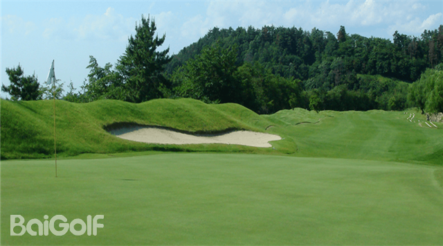 丘陵球场。球场位于高台上,能眺望到龟冈盆地。地处具有平缓坡面的扇形地形。石头,水,小山是球场的主题。球场围绕着主题而建造,12号、13号及16号洞的沟渠、2号、4号、10号、12号以及17号洞的水池,还有从9号洞流淌向16号洞的河流中均布有砾石。小山则通过球道的小丘来表现,和水障碍一样,都成为战略上的要点。