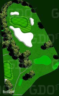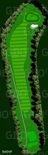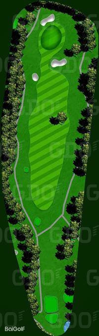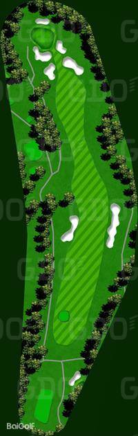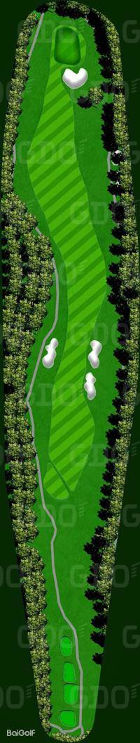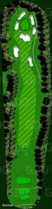 球车配有导航遥控,而且车上居然还有饮水机!这是我第一次见到。 球道养护得很干净,宽阔漂亮。整体距离不算长,但二杆经常需要打上坡,想要果断进攻却会发现果岭前张着大口的巨大沙坑。果岭是一面大的高丽草单果岭,硬度高,球几乎停不下来,所以从第一杆就得考虑好落点。高丽果岭养护得很美,而且速度比想象中快。