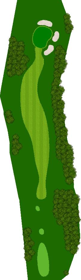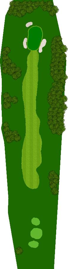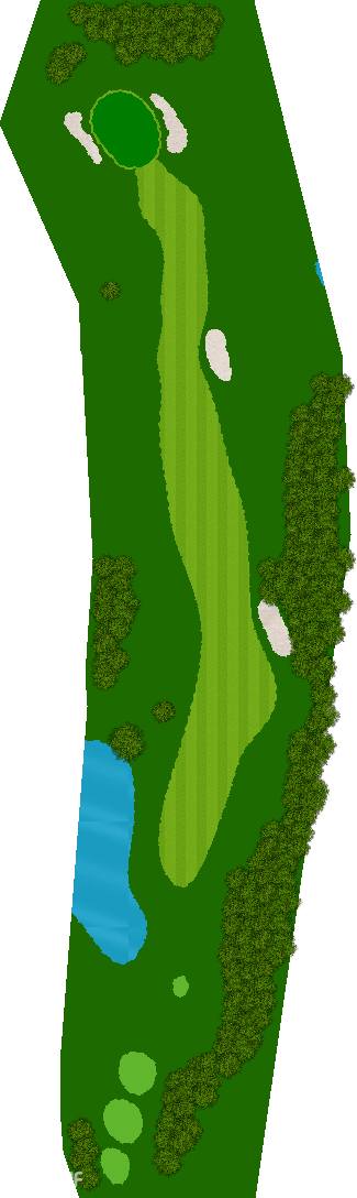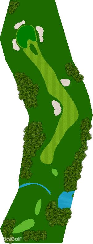 丘陵型的球场。球场的会所是一个色彩斑斓的建筑,配有小木屋,展现了温暖的南国风情。球场的设计保留了自然的杉树林,每个洞之间都由杉树林隔开。许多洞都是直线路型,平均水平的高尔夫球手应该能够期待不错的成绩。然而,从后发球台(バックティ)开始,球场的距离相当长,尤其是长洞(ロングホール)会变得非常有挑战性。第6洞是一个606码的直线洞,球员可以在前两杆轻松挥杆,但第三杆时,果岭左侧有一个水池,即使是老手也很难在第三杆打上果岭。