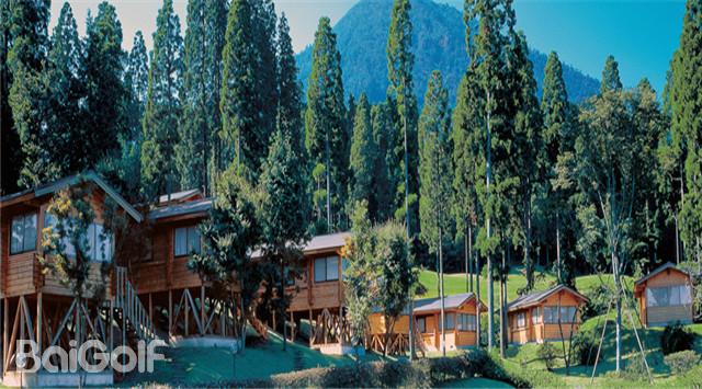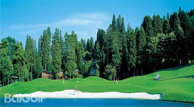 丘陵球场。建在生驹高原上,被杉树、扁柏隔开,可以享受高原清爽的高尔夫体验。到处设有的水池是攻略的关键,特别是后半场有5个洞设有水池,捕捉果岭需要有准确的方向和距离。18号洞的果岭左前方有水池、带水沙坑(BEACH BUNKER),是个美丽的球洞。前半场的4号洞和9号洞是长距离球洞,可以期待打出好成绩。特别是4号洞,球洞广阔,可以尽情全力挥杆,可以享受2杆上果岭的乐趣。9号洞是左狗腿的下坡球位。
