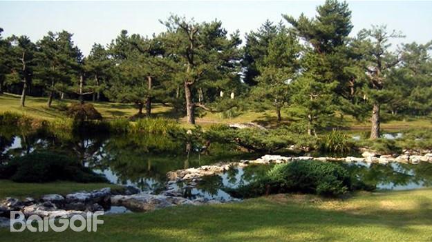 丘陵球场。位于阿苏山的山麓,起伏少,散布在各处的水池是球场一大特征。前半场平坦,球洞被树林隔开,具有林间风格的乐趣。5号洞果岭前方和左侧是水池,有留意。后半场被树林包围,起伏比前半场多,水池不多,但是要留意13号洞和17号洞深处的水池,果岭是本特草1果岭。