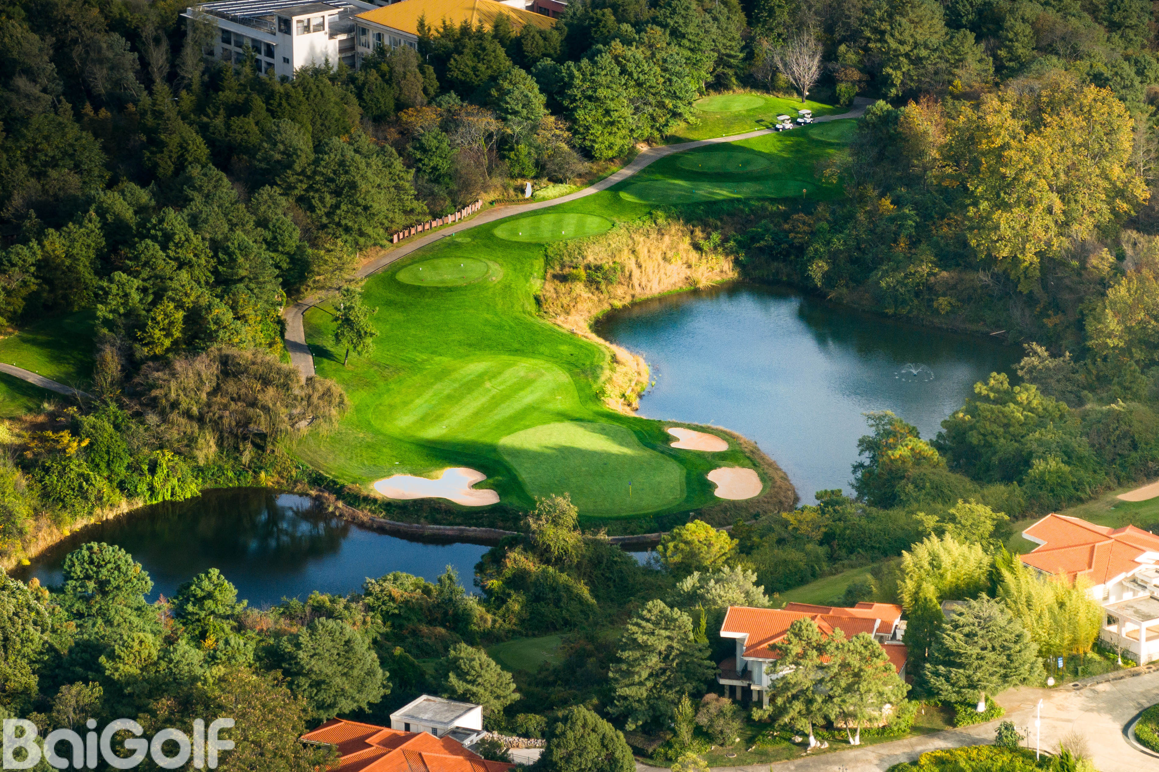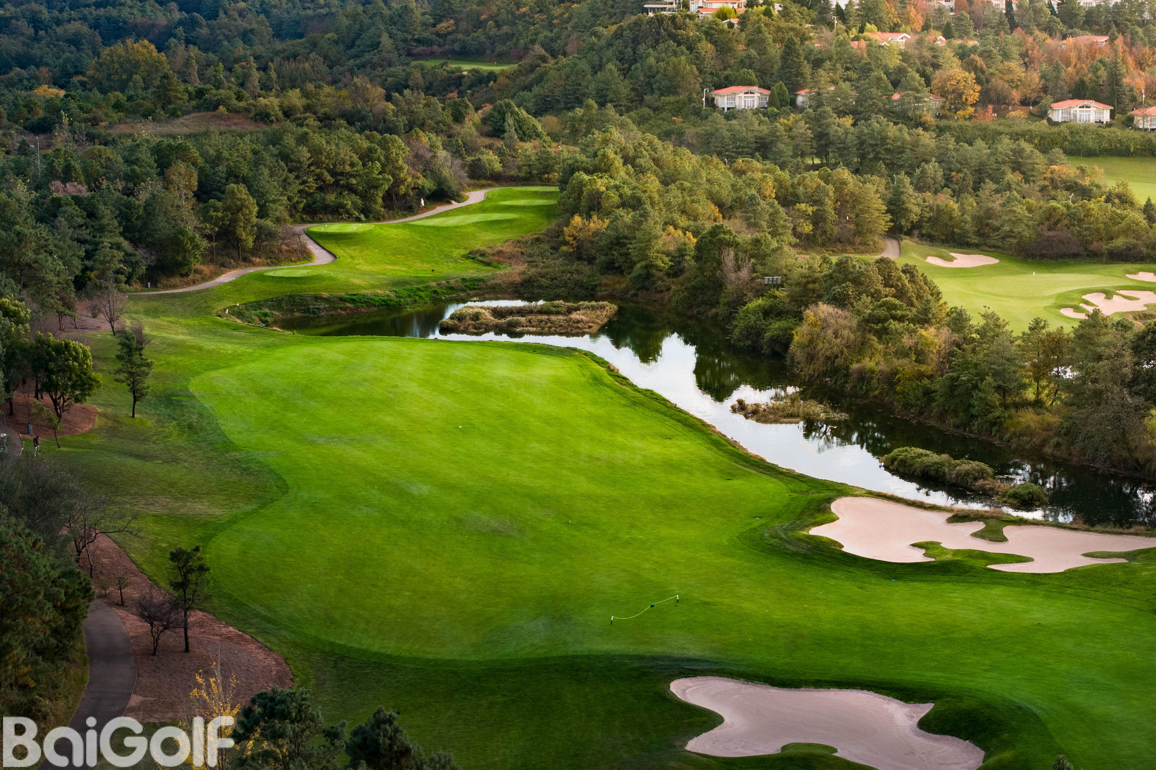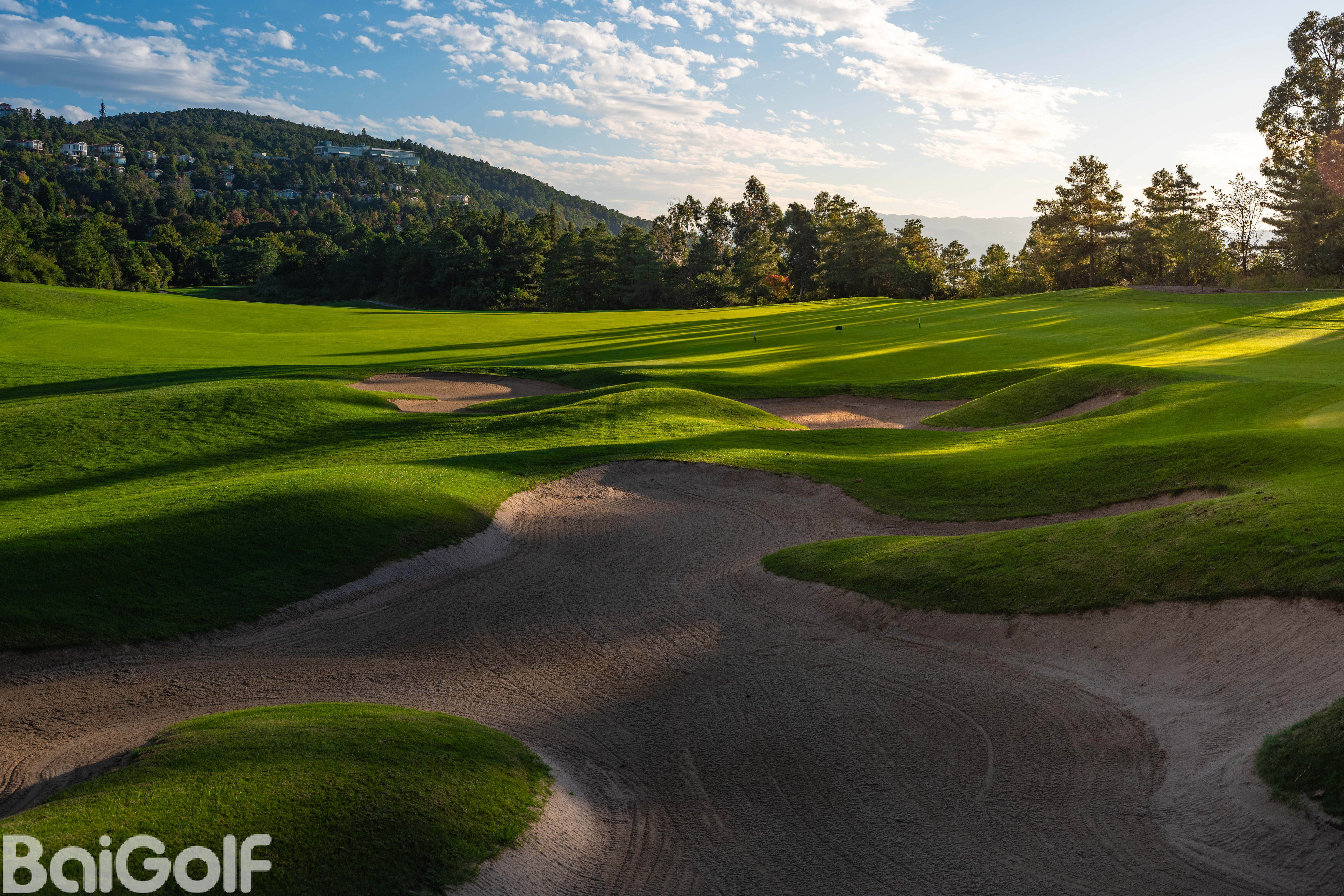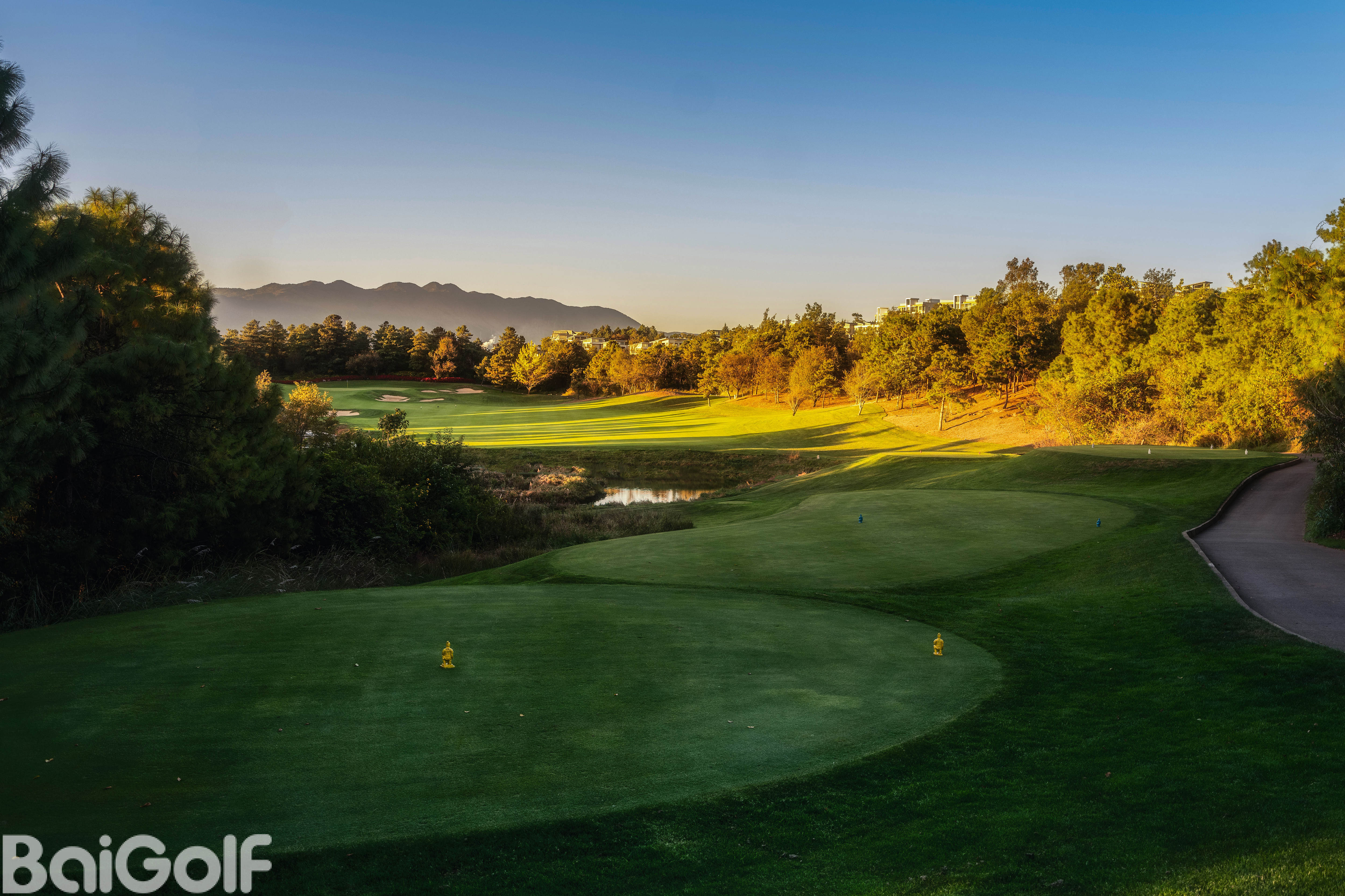 18洞山景球场,位于阳宗海湖畔的高坡上,既得水岸风光之开阔写意,又得山地美景之幽静深邃。山色领衔,湖光作辅,让您忘情山水,俯仰天地;层林叠翠,遍地山花,让您纵情挥杆,心返自然;沙坑星罗棋布,果岭玄机暗藏,尽显杰克•尼克劳斯大师风范,宽广球道绿茵如毯,本特果岭细腻流畅,让您每一杆挑战无限,乐趣无穷。18个精妙设计且风格迥异的球洞满足了各层次球员的需求,令球手们流连忘返。