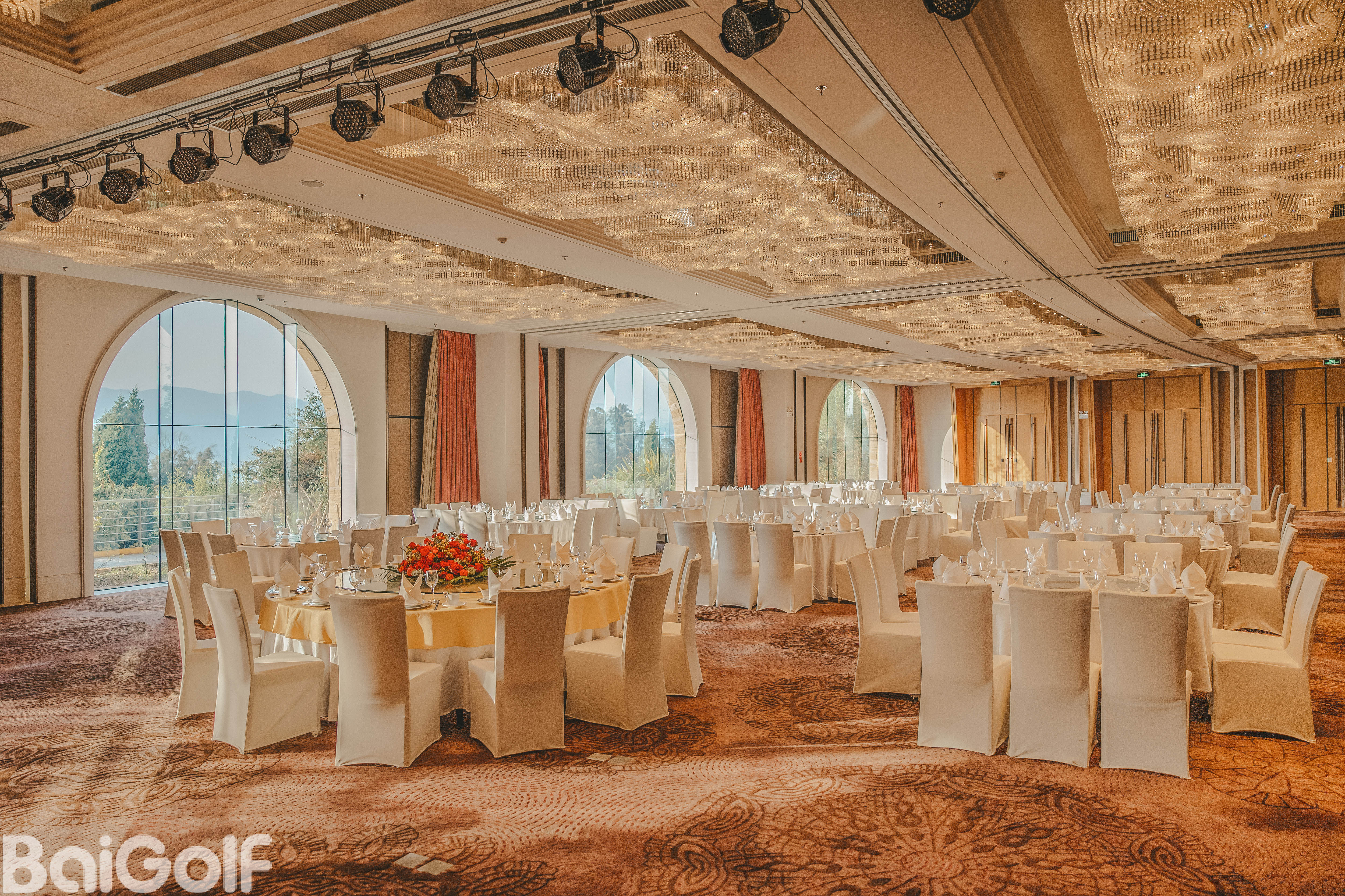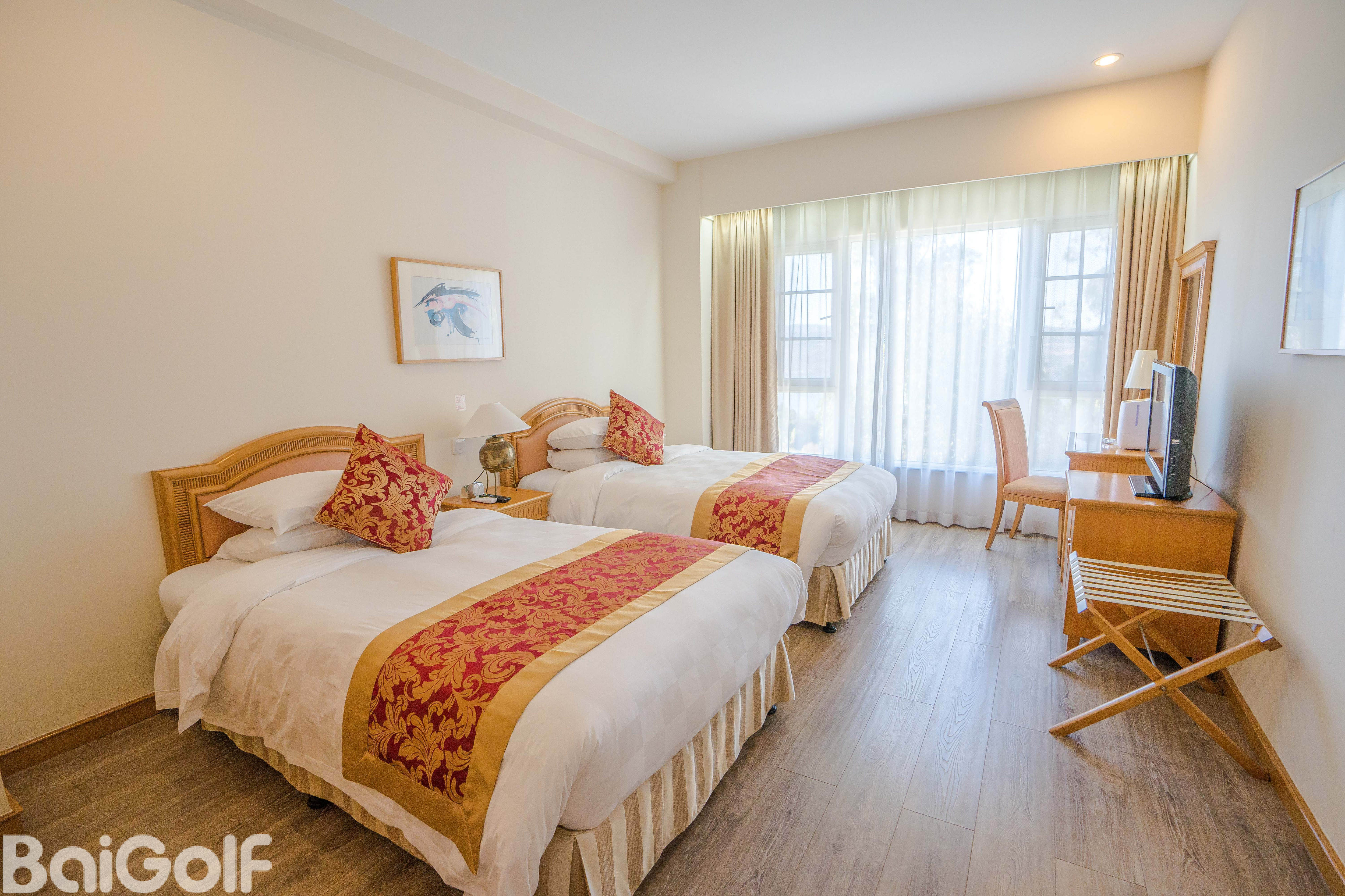 她拥有世界上最棒的500个球洞之一,被评为中国高尔夫最受欢迎的球会,她是世界上最伟大的高球手Jack Nicklaus的心血,是上个世纪末US GOLF DIGEST杂志评出来的中国及香港高尔夫球度假村评选中的冠军。 她如同镶嵌在陡峭山边的一块块绣花地毯,美丽的令人炫目。在这里挥杆,也可以领略到阳宗海湖山峦起伏的壮阔美丽。春天来时,可以看到报春花、紫罗兰、八仙花等等,朵朵的花儿盈盈点点,散落在场内,让她愈发得迷人。