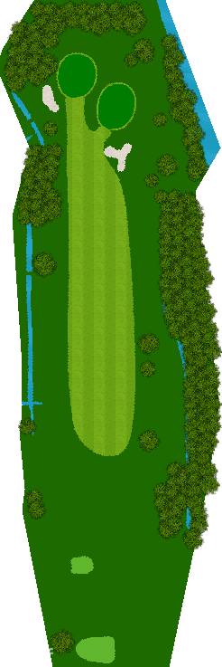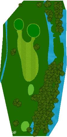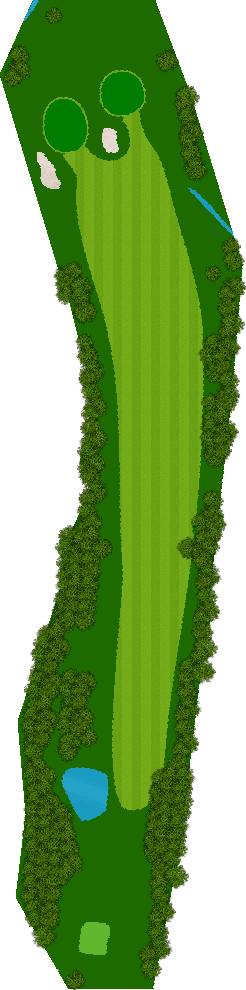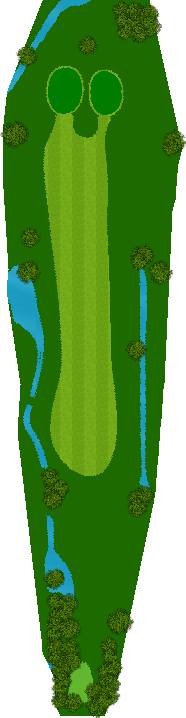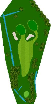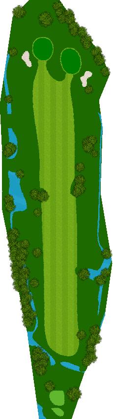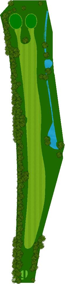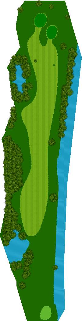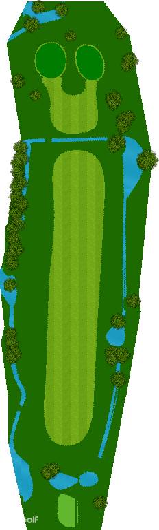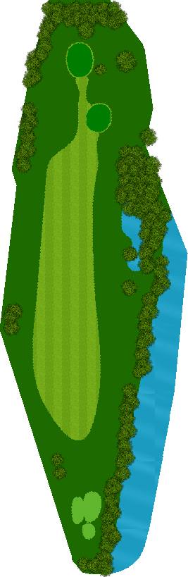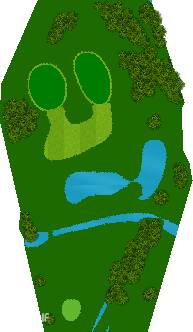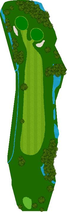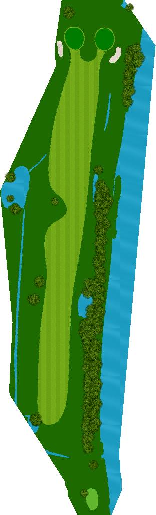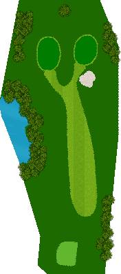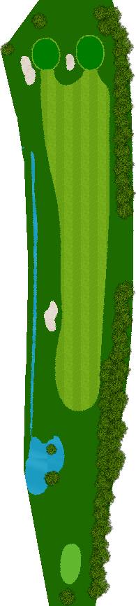 地形平坦树木稀少,用地宽广,各球洞之间都有充分的距离。采用了高丽草的双果岭各自面基大约200坪宽广,可以悠悠闲闲地击球。但是很多球洞都伴有越过水池和障碍物等其他变化因素,因此如果毫无章法地击球的话是拿不到分数的。这是一个着眼于正确地进攻的话就有机会打出小鸟球的球场。