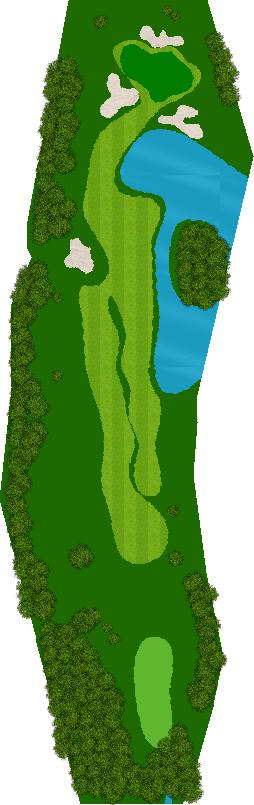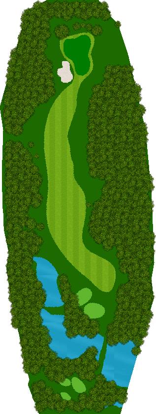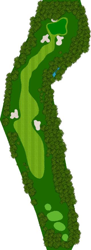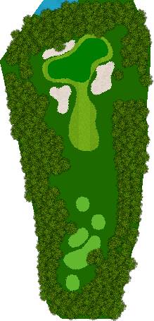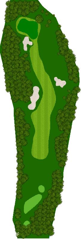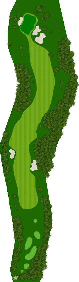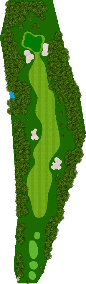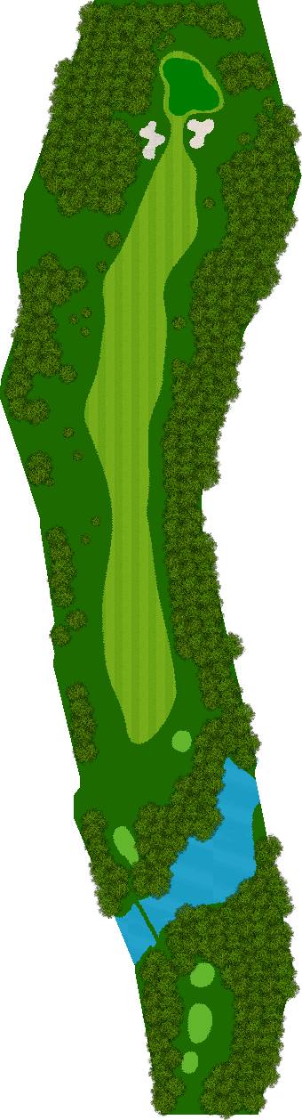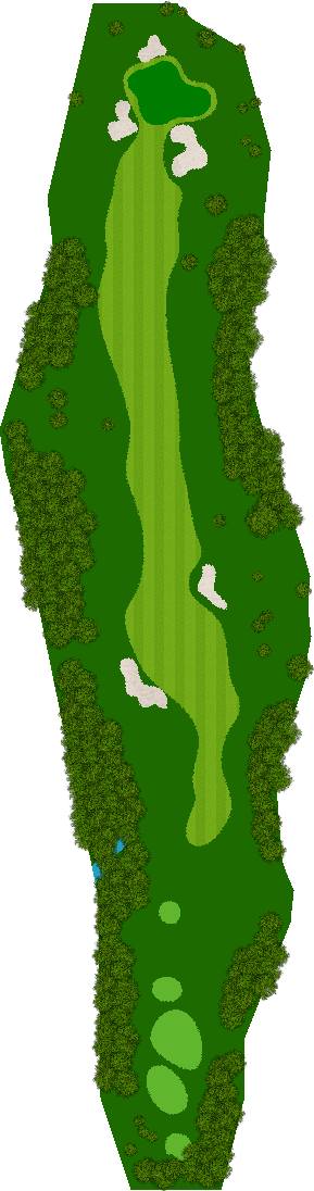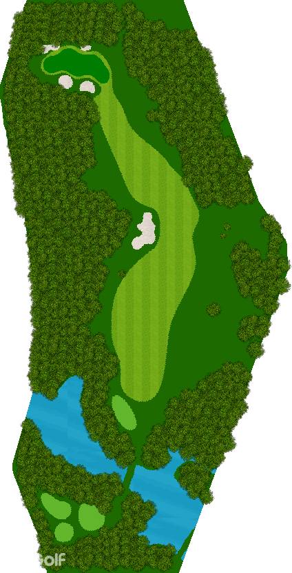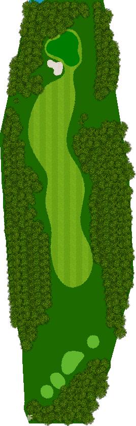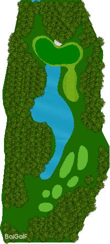 丘陵球场。保留自然树林的平缓起伏,各球洞平坦宽敞,随处设有水池增加策略性。前9洞2号长距离球洞呈S状,发球是上坡球位。5号・7号洞的第一杆是越谷球位,对于新手来说压力很大。9号洞是有平缓的上坡球位的长距离球洞。后9洞球道广阔距离长的球洞多,很适合长打球手,长距离球洞超过550码。16号洞设有水池,需要正确的方向性。最后的18号洞是个名洞,一座双拱桥矗立其中。