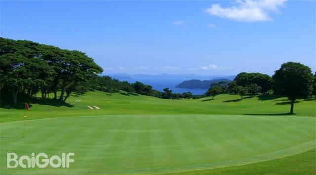 丘陵球场。五岛列岛的中心・福江岛的鬼岳的半山腰上起建的正规度假球场。球道有平缓的起伏,广阔宽敞,比预想更具战略性的18洞。要注意第一杆的落球地点。前半场名为鬼岳球场,昭和46年开场,后半场的火之岳球场是平成2年才开场。职业球手河野高明运用自己的经验和知识进行监修,在不有损美景的前提下设有沙坑水池。要注意风向和果岭上的起伏。