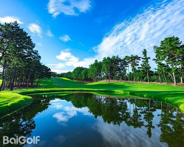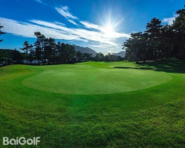 这是一个被松林分隔开来的平坦滨海球场。绝佳的地理位置,正面可眺望玄界滩,右手边能看到汤川山。无论是中距离球洞(中洞)还是长距离球洞(长洞),都有足够的距离,要求选手充分发挥出每一种球杆的作用。一旦将开球打偏,层层叠叠的老松林就会出现在球道的正侧面或后方,让选手别无选择。102 个交叉沙坑和防护沙坑分布在关键位置,增加了球场的难度。这个满是郁郁葱葱的松林绿意、充满高雅格调的球场正恭候着各位的到来。