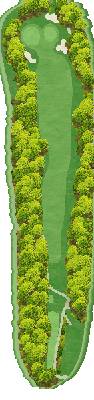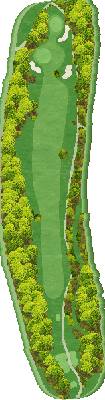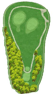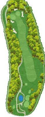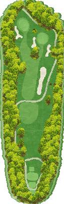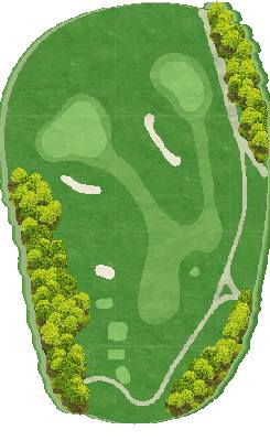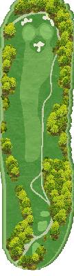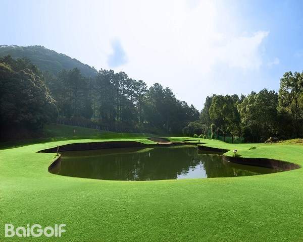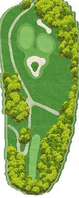 这是一座丘陵球场。虽然在距离方面并非属于较长的那一类,但由于零星分布着池塘和树木,所以是一个颇具难度的球场。前九洞中,6 号洞的长洞很有难度。第二杆是往下打的击球,果岭前方的池塘会让人很在意。巨大的楠木树的右侧是第一杆的最佳落球位置。后九洞中,10 号洞是略微向左弯曲的球洞。发球台周边感觉比较狭窄,但落球区域却很宽广。15 号洞有一个巨大的沙坑,很有威慑力。