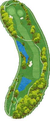 丘陵球场。国王球场的9洞正统标准,球洞幅度广阔。但是左右两侧的自然树林生长茂盛密集。皇后球场的9洞中5个球洞设有水池,只要避开水池进攻问题就不大了。除了发球以外,水池也会出现在第二杆的攻略路线上,因此击球既要大胆又要细心。王子球场是最具变化的 9 洞球场。除了有狗腿洞和起伏较大的球洞之外,还有从发球区到果岭全部被池塘环绕的短洞,能够激发所有高尔夫球手的挑战欲望。