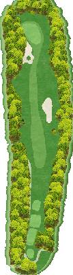 这是一处海拔 200 米、开阔平坦的球场。果岭起伏变化丰富,是每个球洞都拥有 850 平方米面积的本特草单层果岭。这里有装点四季的植物景观,宽阔的本特草单层果岭,各球洞在充分利用了丘陵美丽起伏地势的同时,又始终采用了平坦的设计风格。这个球场可以根据每个人的技术水平来制定攻略方法,充满了高尔夫运动原本的乐趣。