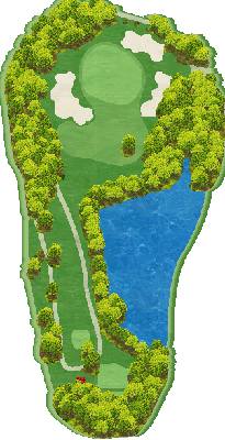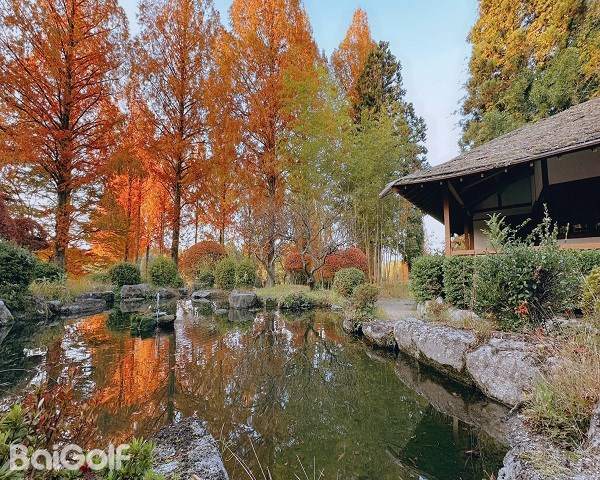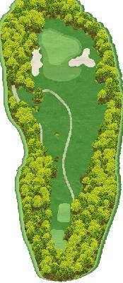 丘陵球场。有着适度的起伏,球道上大大小小的起伏让打球过程变得很有趣。而且,球洞的构成也丰富多样,有上坡击球、下坡击球、越过池塘等多种变化。前九洞第 1 洞第一杆是较为轻松的下坡击球,第二杆是上坡击球。第 2 洞是盲打洞,左右两侧都出界。不过,只要打出精准的击球就没有问题。后九洞第 10 洞是下坡击球,第二杆是上坡击球。接着,第 15 洞要越过山谷,第 16 洞要越过池塘,压力较大的球洞接连出现。