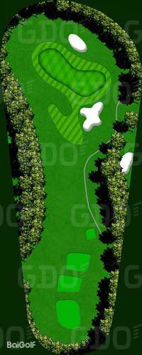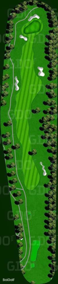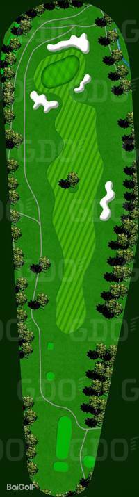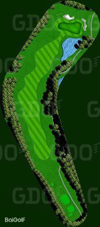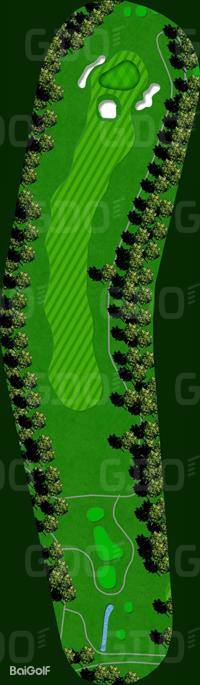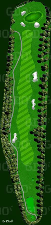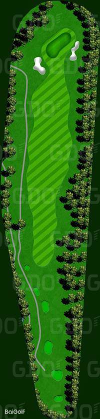 这是一个充满挑战性的丘陵球场。巧妙地利用了自然环境,尤其是树木繁多,因此有着林间的独特韵味。球场中有一些平坦的球洞,并且将池塘融入了布局设计中,颇具难度。前九洞大部分区域较为平坦,但有很多球洞利用了池塘。其中,第 6 洞是左狗腿洞,在果岭前方设置了一个很大的池塘。由于距离也比较远,所以两杆上果岭是比较困难的。第 8 洞是一个很有趣的球洞,球道从中间开始分成了两层。后九洞除了第 14 洞是上坡球洞和豪迈的下坡球洞第 17 洞之外,其他的都是平坦的球洞。