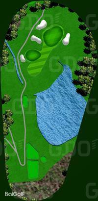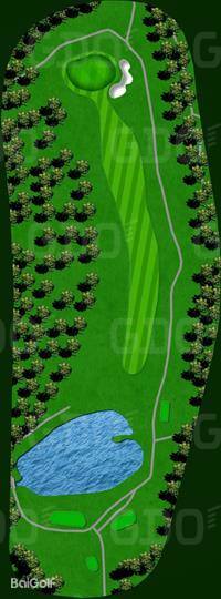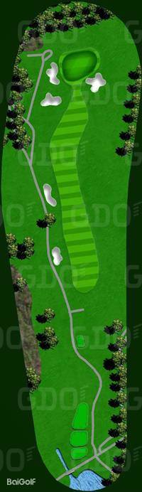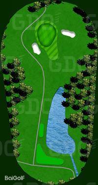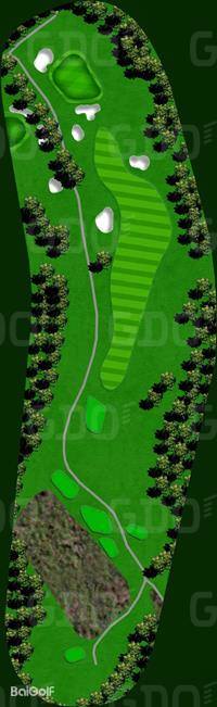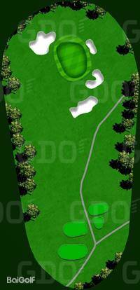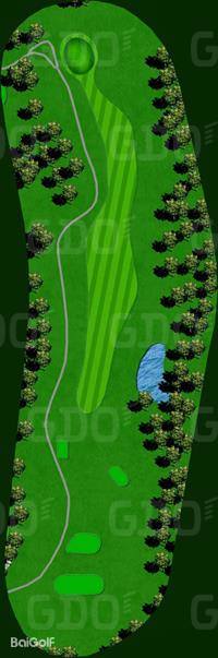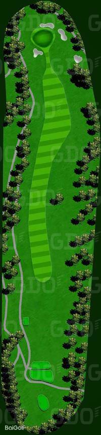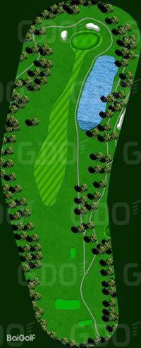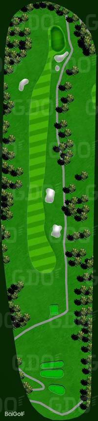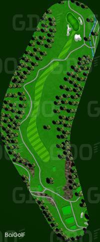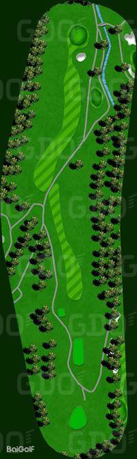 丘陵球场。这是一个整体有着和缓起伏的球场。各个球洞地势平坦,球道的宽度也十分充裕。前九洞有池塘,包含越过池塘、上坡击球、下坡击球等变化,有很多能让人享受其中的球洞。第 1 洞以豪迈的下坡击球开局,第 3 洞和第 8 洞需要越过池塘。后九洞有很多缓缓向下的球洞。第 11 洞有一个与球洞平行的池塘,需要格外注意。第 13 洞是一个左右有弯曲的球洞,球员们满怀喜爱地将它称为 “鳗鱼的床铺” 。