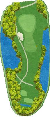 这是一个丘陵球场。场地平坦,球道也很宽阔,是可以尽情挥杆的球场。面积较大的本特草果岭不仅形状多样,而且有起伏变化。最具特色的球洞是 4 号长洞。发球台的两侧是樱花树和楠树等古老树木形成的林荫道,果岭一侧设有草皮沙坑。5 号洞两侧有池塘,7 号洞需要越过池塘。8 号洞距离较短,但果岭是炮台型果岭。虽然是 9 洞球场,但通过变换发球台的位置,将其设定成了 18 洞的模式。